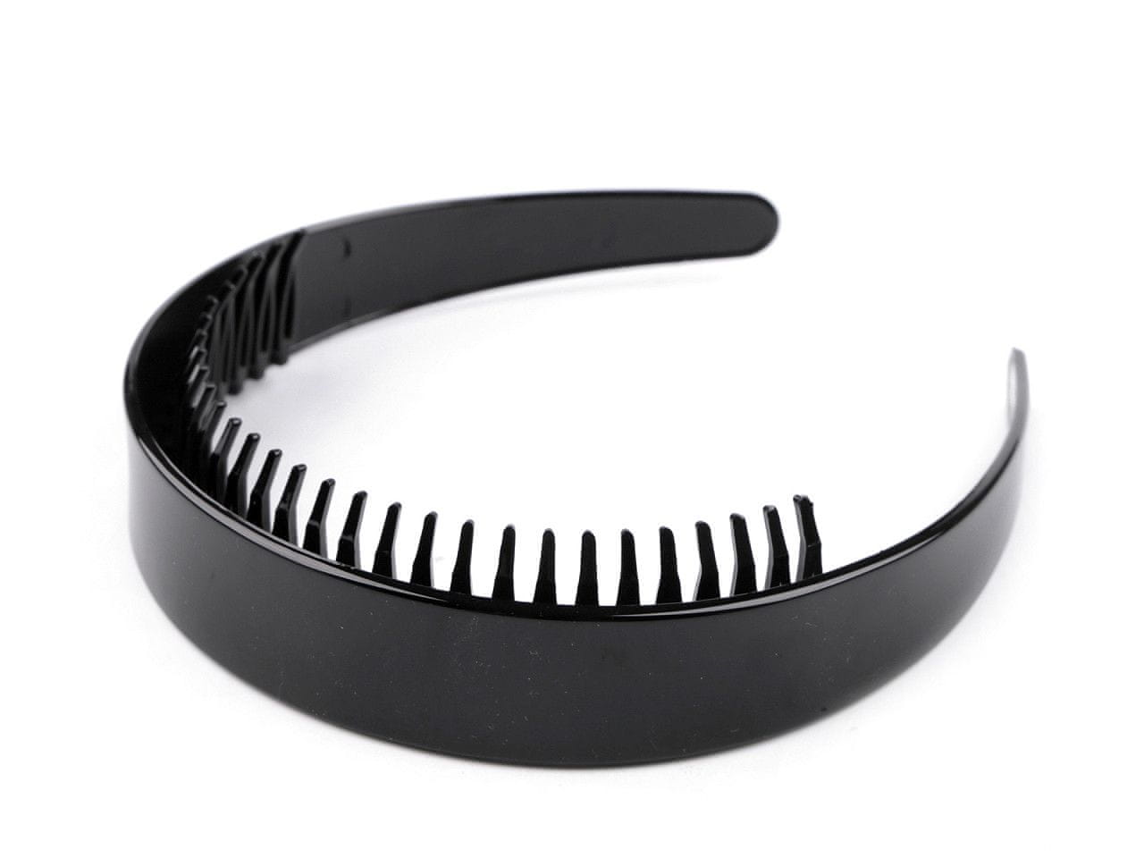 Široki plastični naglavni trak z glavnikom ima sijočo in gladko površino. Zelo udoben za nošenje, zaradi glavnika z dolgimi zobmi pa se odlično drži. Uporabite ga lahko kot osnovo za nadaljnje okraševanje in ustvarite edinstven kos, prilagojen samo vam. Okraske lahko po možnosti prilepite z lepilom za tekstil ali pištolo za vroče taljenje.