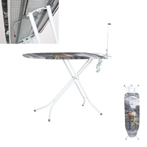 Likalna deska EURO z električnim podaljškom in vtičnico. Dimenzije 120 × 38 cm. Kovinska plošča za razbijanje, 8 mm podloga. Nastavljiva višina od 71 do 94 cm. Teža 4,9 kg. Premer noge 22 mm, debelina materiala 0,7 mm. Oblazinjenje dekor glede na razpoložljivost na zalogi. EAN 8591022370889 / 7640114031731