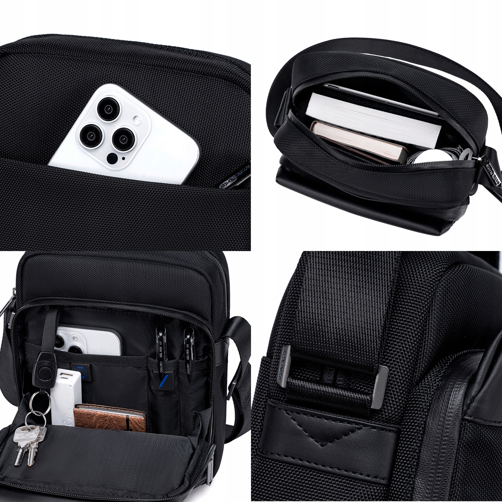 shumee Moška črna torba za čez ramo, mestna torba, vodoodporna, poslovna, elegantna, funkcionalna, 3,4 l, Arctic Hunter K00679Black