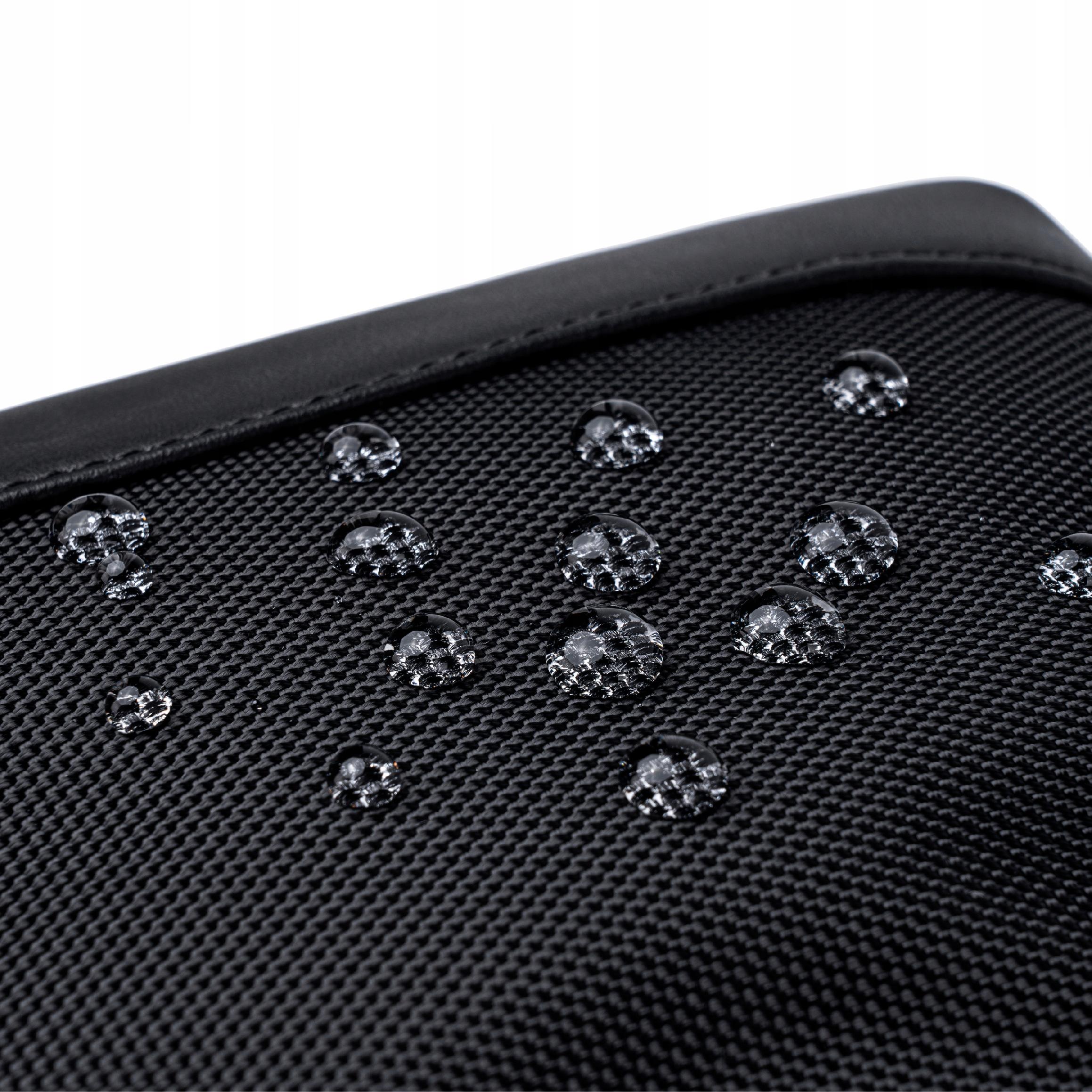 površina torbice vodoodporna , ki učinkovito ščiti njeno vsebino pred nepričakovanim dežjem ali pljuski. To pomeni, da jo lahko preprosto vzamete s seboj na sprehod, v službo ali na potovanje, ne da bi vas skrbelo vreme.