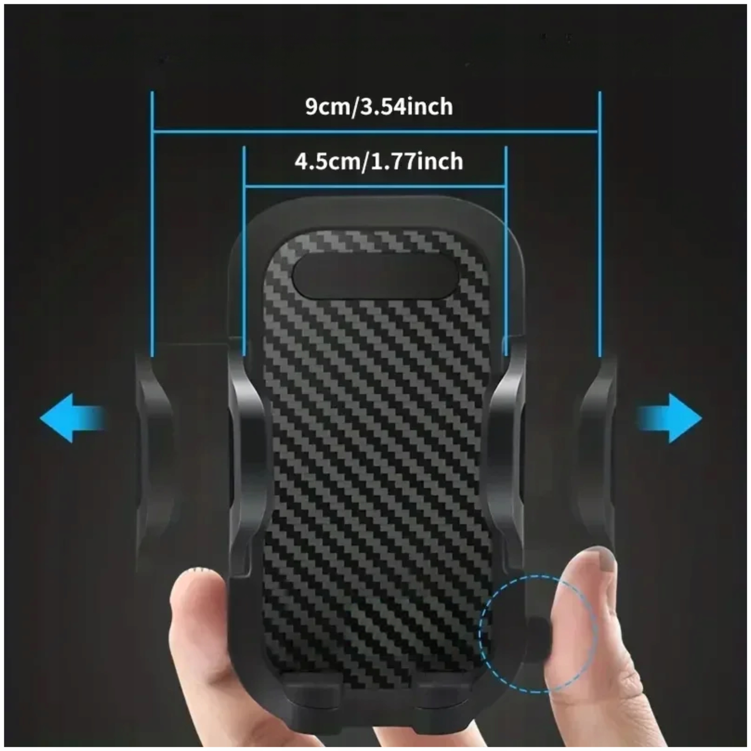 Preprosto upravljanje z eno roko Samo pritisnite gumb, da v sekundi iztegnete objemko in enostavno namestite telefon. Takojšnja namestitev – orodje ni potrebno!