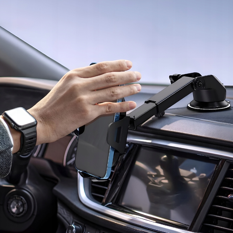 Nosilec je opremljen s trpežnim priseskom, ki omogoča trdno pritrditev na vetrobransko steklo ali armaturno ploščo avtomobila. To zagotavlja, da se nosilec med vožnjo ne bo nepričakovano snel in da bo vaš telefon ostal na enem mestu – brez nevarnosti padca.