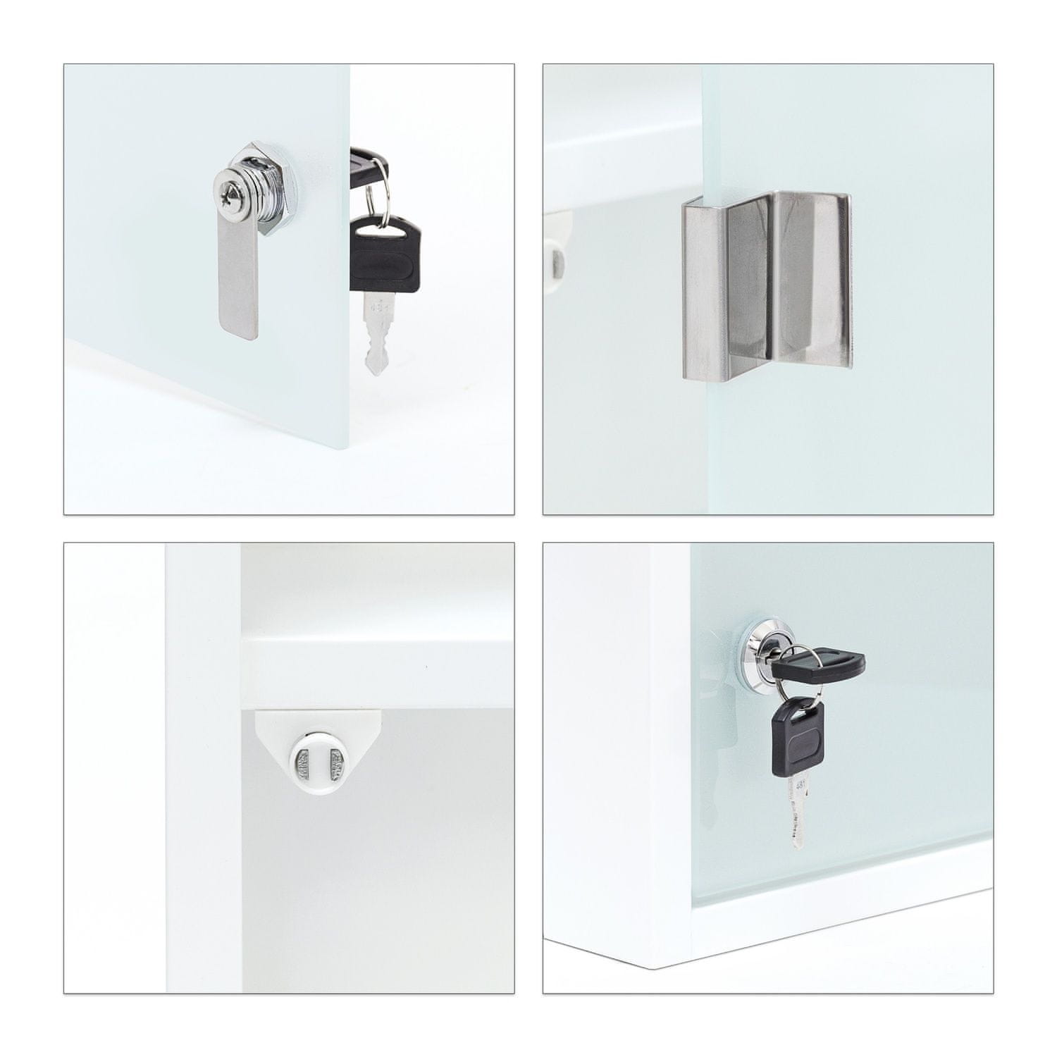 Zavarujte svoj dom z veliko omarico za prvo pomoč, ki jo je mogoče zakleniti in ponuja dovolj prostora za shranjevanje zdravil in potrebščin. Ta omara, varna za otroke, zagotavlja varnost z magnetno ključavnico in ključem.