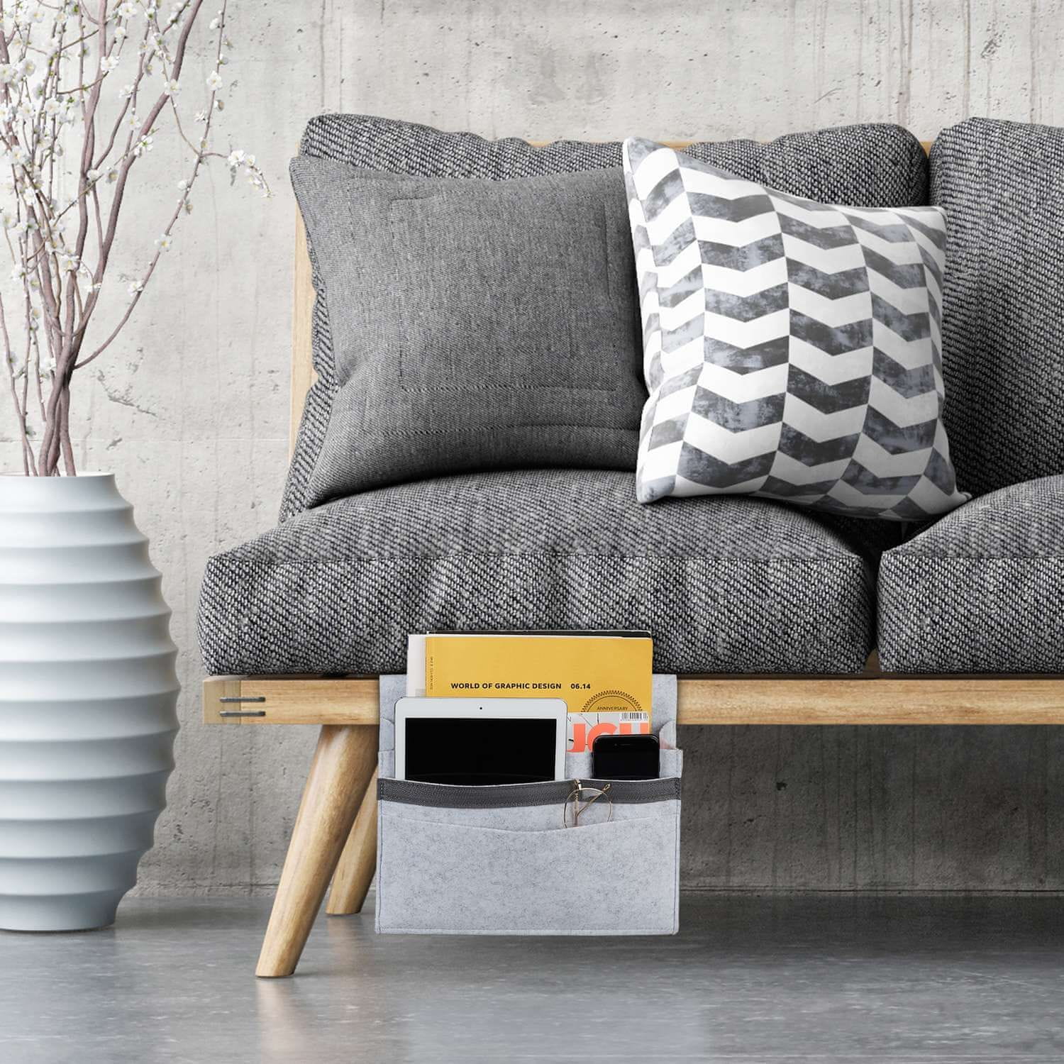 Organizator iz klobučevine za kavč ponuja rešitev brez navlake s svojo vsestransko zasnovo, popolno za uporabo ob postelji ali na kavču. Naj bodo osnovne stvari, kot so knjige, tablice in daljinski upravljalniki, lepo organizirane in lahko dostopne.