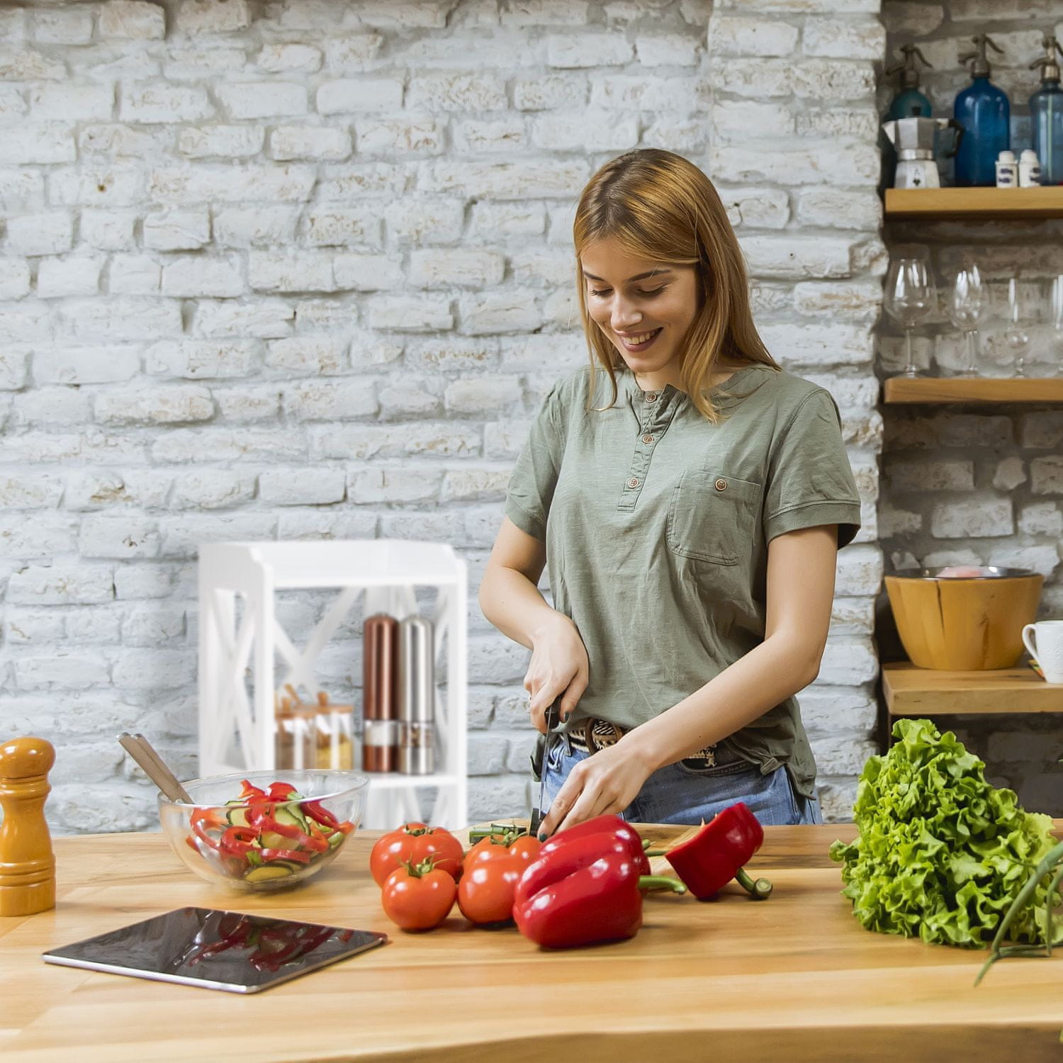 • Vključuje pametno zložljiv predal za papirnate brisače ali prtičke.
