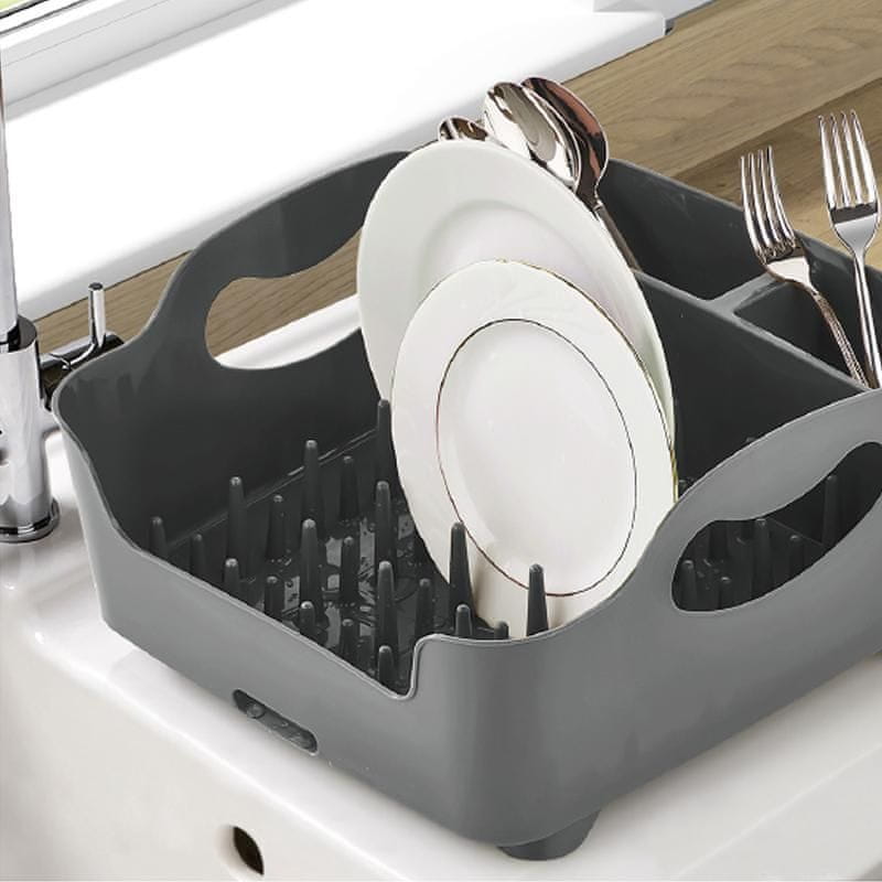 Northix Stojalo za posodo z držalom za jedilni pribor in ročaji - sivo