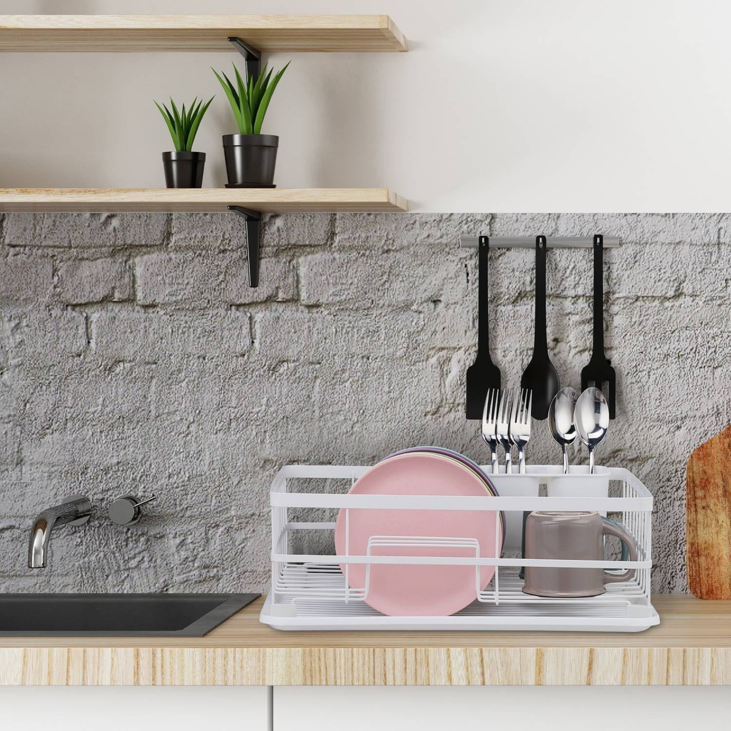 Poenostavite svojo kuhinjsko rutino s tem praktičnim stojalom za posodo. Njegova premišljena zasnova zagotavlja, da se vaša posoda učinkovito posuši, hkrati pa ohranja urejen pult. Zgrabite svojega še danes in uživajte v več prostega časa.