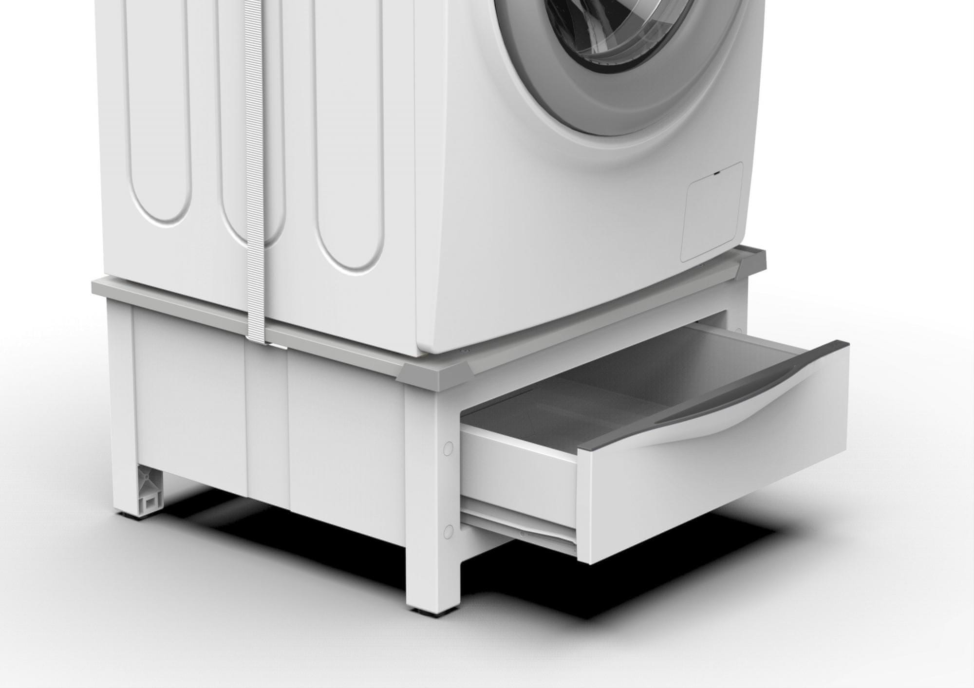 • 30 cm visok podstavek z izvlečnim predalom, olajša uporabo pralnega ali sušilnega stroja in olajša čiščenje tal