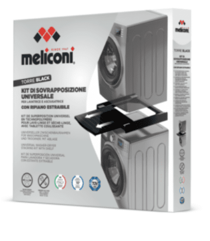 Meliconi vezni člen varno in stabilno poveže pralni in sušilni stroj. Ima praktično in priročno drsno polico, ki postane idealna delovna površina za nalaganje, razkladanje in zlaganje perila (največja nosilnost: 10 kg).