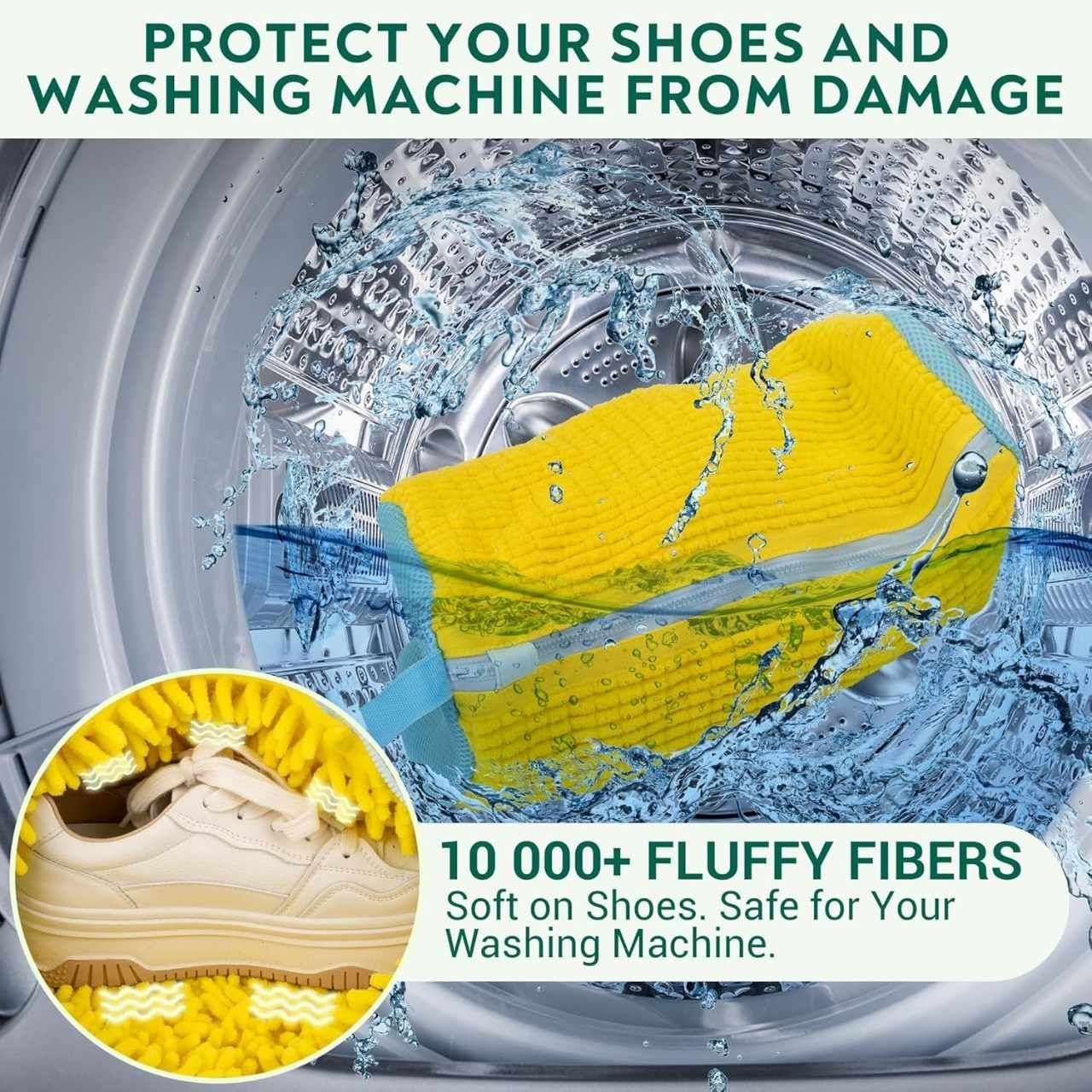 • Nežno, a temeljito čiščenje: Uživajte v občutku čistih čevljev, saj mehke notranje ščetine med pranjem pomagajo odstraniti tudi trdovratnejšo umazanijo brez poškodovanja materiala.• Ohranja obliko čevljev: Prihranite si skrbi zaradi udarjanja ob boben – vrečka čevlje med ciklom stabilizira, da lažje ohranijo svojo obliko in videz.• Zaščiti oblačila v bobnu: Perite bolj brezskrbno, ker mehka vlakna zmanjšujejo trenje in pomagajo preprečiti, da bi obutev poškodovala druga oblačila.• Zaščita tudi za pralni in sušilni stroj: Poskrbite za tišje in varnejše pranje, saj vrečka blaži udarce trde obutve ob boben in pomaga zmanjšati drgnjenje med ciklom.• Primerno za sušilni stroj: Po pranju nadaljujte brez dodatnega napora, saj je vrečka primerna tudi za sušenje v stroju za še bolj enostaven postopek.• Zadrga in nastavljiv trak: Imejte vse pod nadzorom – zadrga varno zapre vsebino, nastavljiv trak pa pripomore k praktični uporabi.• Večkratna uporaba: Razbremenite roke in rutino – trpežna pralna vrečka je zasnovana za ponavljajočo uporabo in hitro sušenje po pranju.