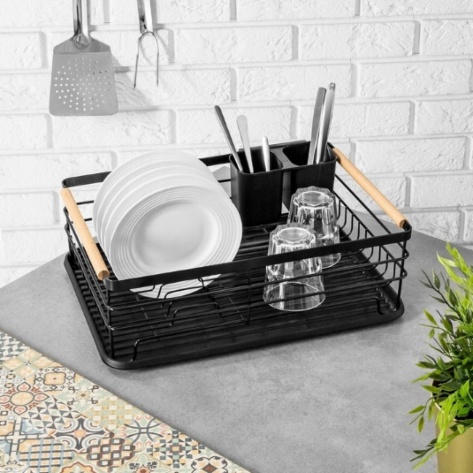 shumee Velik črn stoječi odcejalnik za jedilni pribor in krožnike