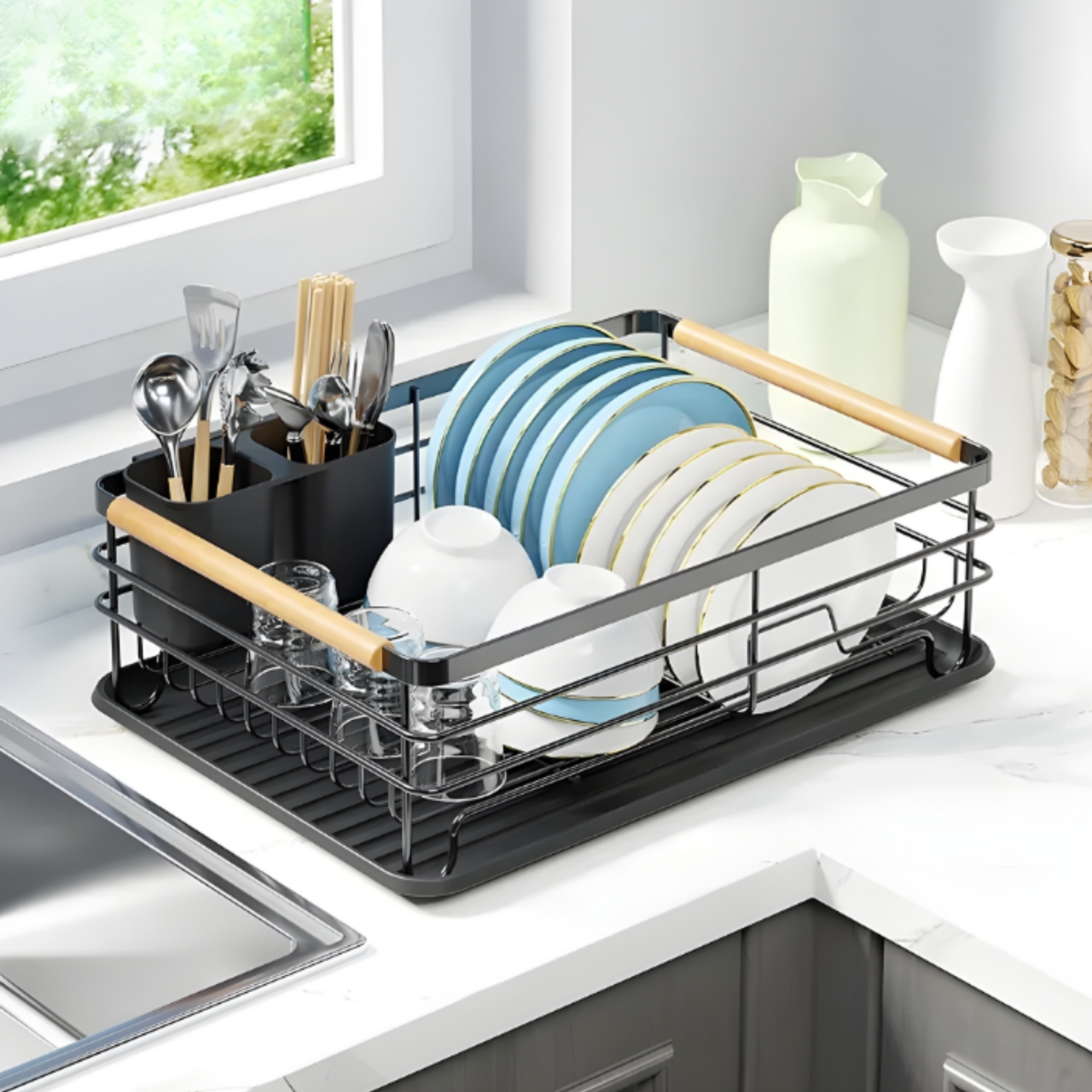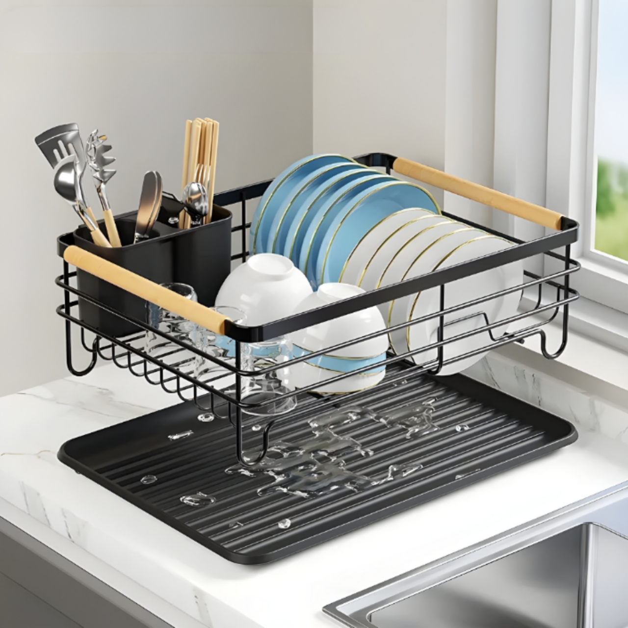 ✨ STOJEČI OCEDEVALNIK ZA POMOČ, ČRN, VELIK, ZA JEDILNI PRIBOR, KROŽNIKE, POSODE