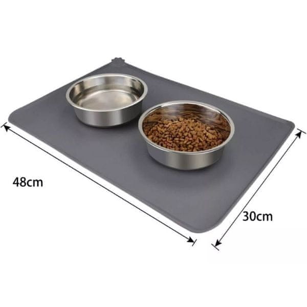 Z debelimi, dvignjenimi robovi ta nepremočljiva podloga ščiti tla pred neurejenim razlitjem hrane in vode tudi pri najbolj nerednih jedcih. Protizdrsna površina preprečuje premikanje posodic. Je idealna za uporabo pod posodami za hrano hišnih ljubljenčkov.