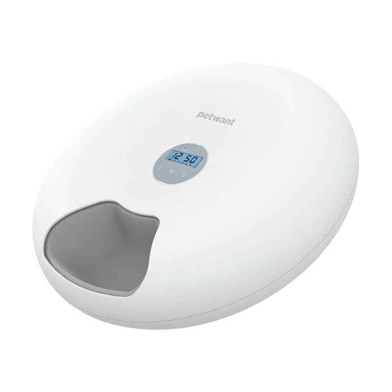 Petwant F6 LED je avtomatska krmilnica za vašega štirinožnega prijatelja. V 180 ml posodice lahko daste poljubno vrsto obroka, robot pa se glede na nastavljen čas sam nastavi na ustrezno vrsto hrane.