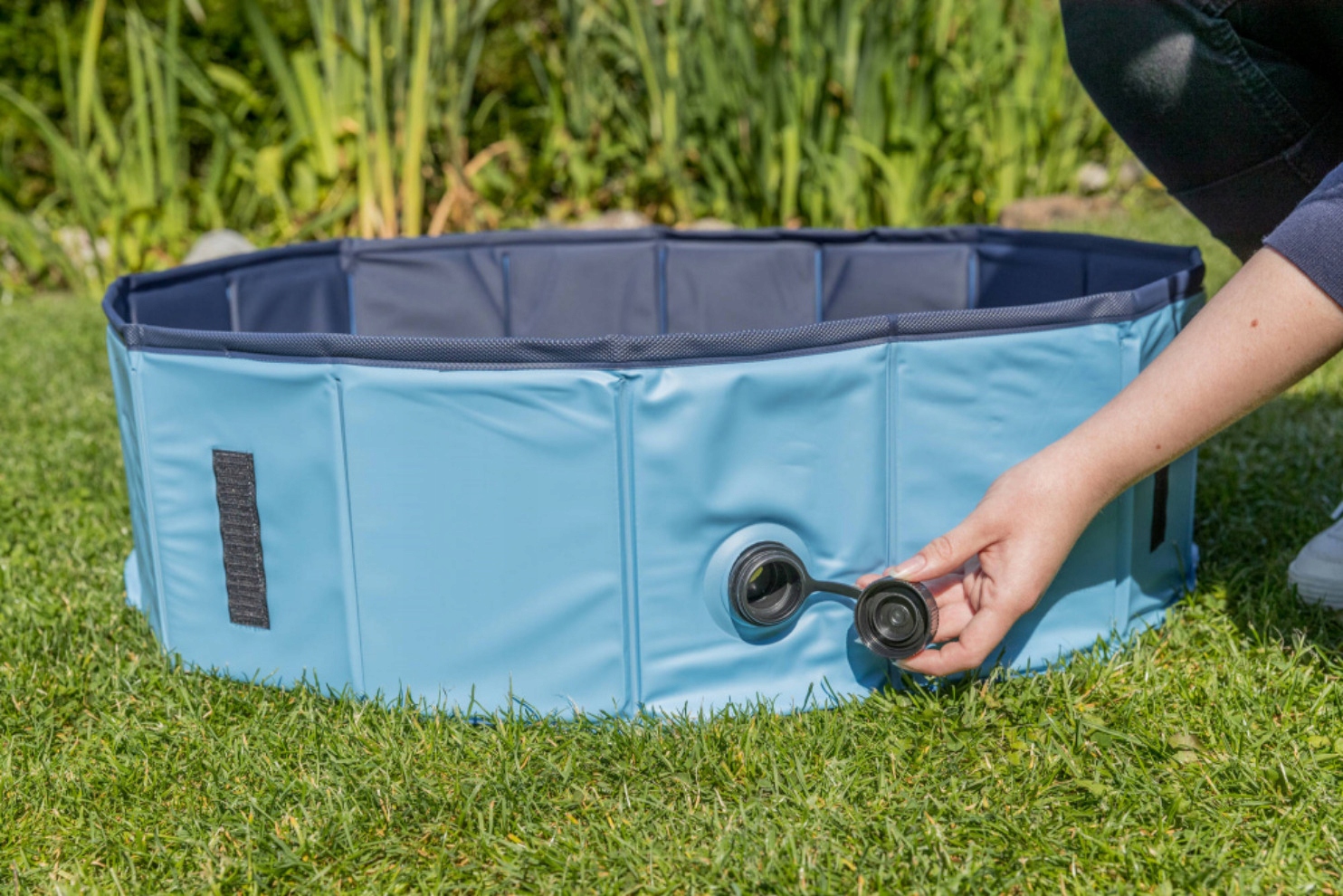 Material je odporen na UV žarke in ima pokrov za enostavno praznjenje.