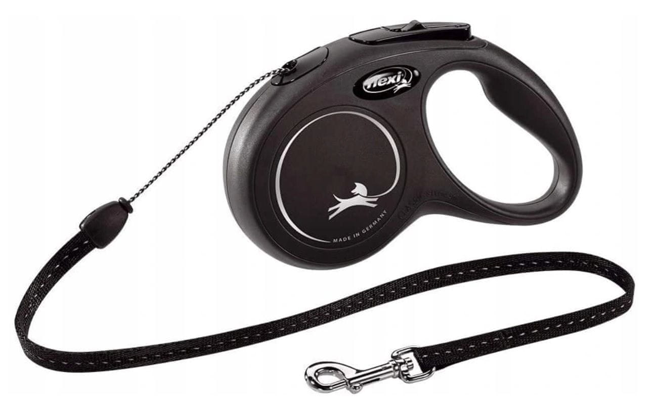 shumee FLEXI NEW CLASSIC M avtomatski pasji povodec, vrv - 5 m - do 20 kg, črn