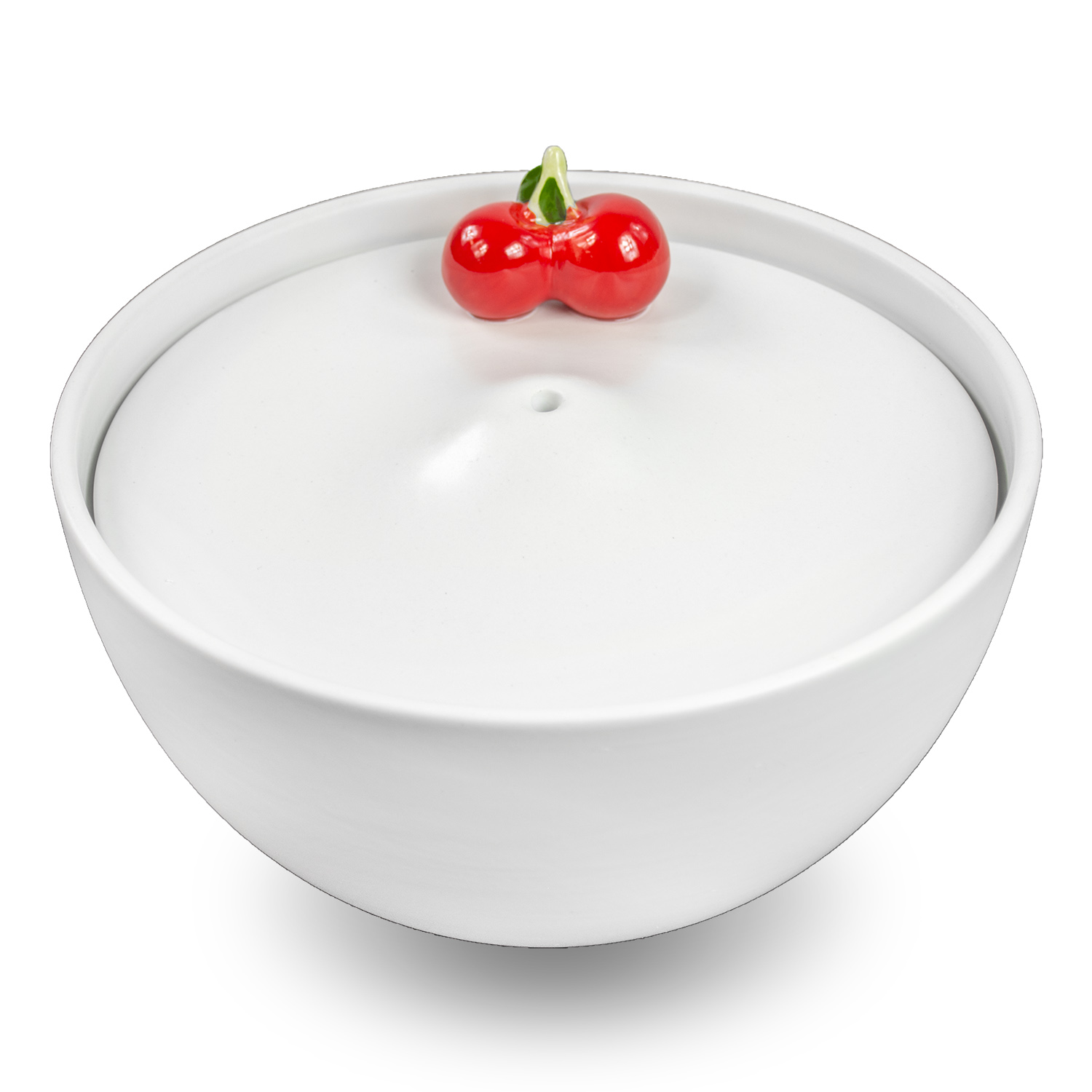 Napajalka je izdelana iz bele, trpežne keramike z gladko površino , ki notranjosti doda eleganco. Nežen češnjev poudarek na vrhu naredi to več kot le navaden pripomoček – je prava dekoracija! Postavite ga v kuhinjo, dnevno sobo ali spalnico in postal bo ne le funkcionalen, temveč tudi dekorativen element vašega doma.