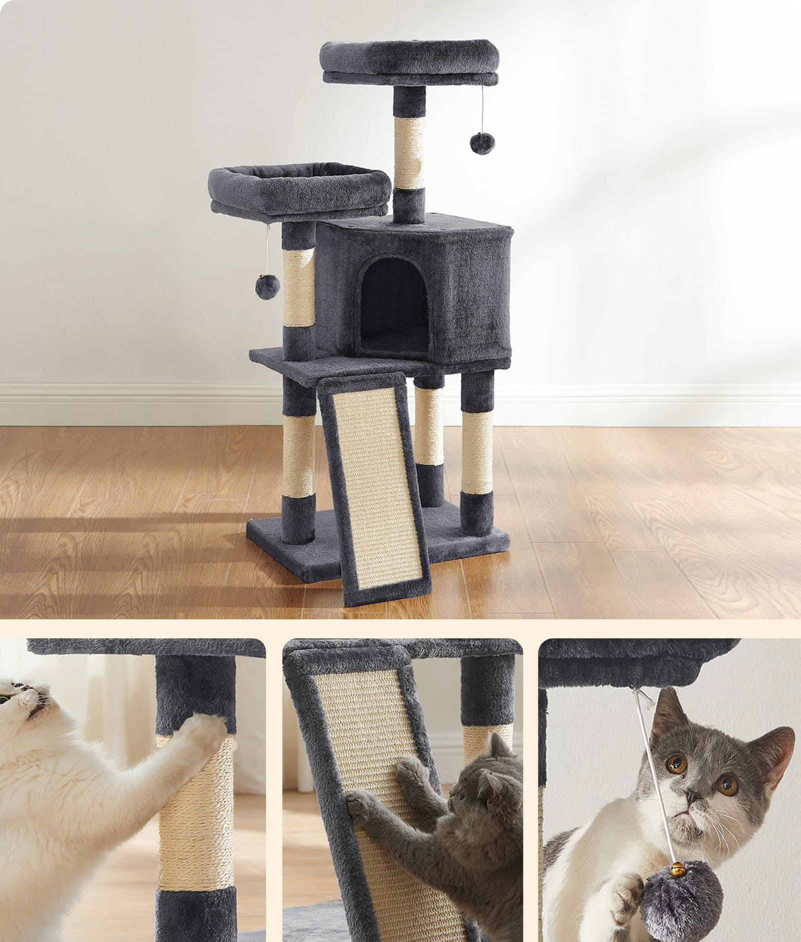 Opis izdelka OSKAR: MAČJI PRASKALNIK Zelo stabilen praskalnik iz mehkih materialov, ki jih je enostavno čistiti. Dobro zasnovan, se prilega v vsako notranjost in vaši mački daje več prostora za igro. Steber, ovit s sisalovo vrvjo, bo ohranil vaše kremplje ostre in zaščitil vaše pohištvo pred praskami. SPECIFIKACIJA Barva: temno siva Material: iverka, sisalova vrv, plišasta tkanina Dimenzije: 50 × 35 × 115 cm (širina x globina x višina) Teža: 10,6 kg Izdelek za samostojno montažo. Značilnost izdelka „praskalnik za mačke“ je, da žival uniči vse elemente praskalnika, kot so: plišasti material, sisal/juta/papirnata vrvica, sisalove podloge, papirnate cevke, iverka/vlaknena plošča in pritrjene igrače. Namen izdelka „praskalnik za mačke“ je, da živali omogoči, da izdelek uniči. Zato poškodbe, ki nastanejo zaradi naravne uporabe, tj. uničenja s strani živali, kot so poškodbe plišastega materiala, sisala/jute/papirne vrvice, sisalovih podlog, papirnatih cevk, iverne/vlaknene plošče in igrač, pritrjenih na izdelek, ne bodo podlaga za reklamacijo in morebitne reklamacije v zvezi s takšno škodo ne bodo upoštevane. Logistični podatki 1 x SKU 2390 teža 11,8 kg bruto – dimenzije 52 × 38 × 27,5 cm.