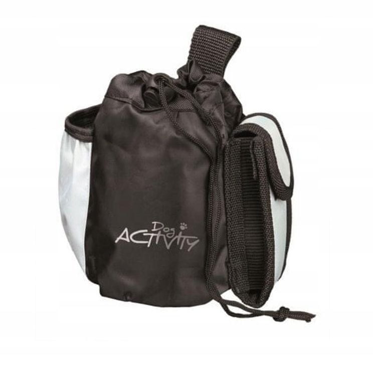 Torbica za priboljške s prostorom za vrečko. Torbica ima glavni žep za priboljške in dva stranska žepa, npr. za vrečke. Zapre se lahko z vrvico z odstranljivim naramnim trakom, ježkom za pritrditev na pas ali zanko za pas z zunanjimi žepi. Izdelana iz najlona/poliestra. Izdelana iz najlona. Stanje: Novo. Oglejte si naše druge dražbe!