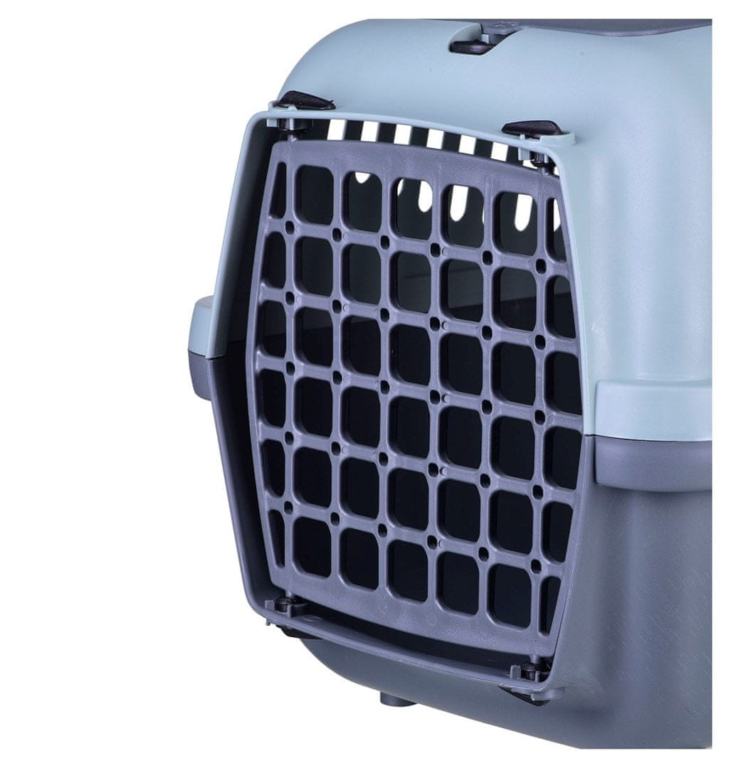 GULLIVER 2 s plastičnimi vrati je funkcionalen in univerzalen transporter, idealen tako za mačke kot za majhne pse (npr. za škotske terierje, avstralske terierje, jazbečarje, šicuje, čivave ali miniaturne špice). Na stranskih stenah ima navpične odprtine za prezračevanje, ki zagotavljajo odlično prezračevanje.