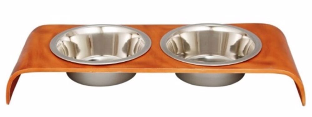 Slogovita dvojna skleda v aluminijastem stojalu z imitacijo lesa je praktična in elegantna rešitev za vsakodnevno hranjenje vašega psa. Kombinacija sodobnega dizajna in funkcionalnosti se prilega vsaki notranjosti.