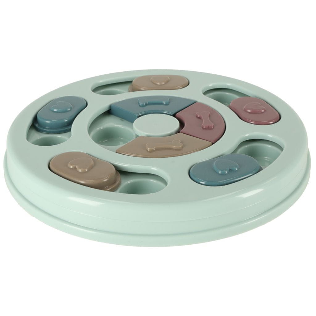 IGRAČA ZA PASJE IGRAČA ZA SPOMINJENJE HRANE Ste srečni lastnik hišnih ljubljenčkov? Privoščite svojemu ljubljenčku malo veselja. Edinstvena skleda, ki upočasni prehranjevanje s funkcijo puzzle, bo zagotovo všeč vsakemu ljubljenčku. Imeti psa ni le veliko veselje, ampak tudi velika odgovornost za njegovo zdravje. Tega se popolnoma zavedamo in smo tukaj, da vam ustrežemo. Nekateri psi, zlasti tisti po težkih izkušnjah, požrešno žrejo hrano, ki jim jo dajo. Vzroki so lahko različni, a posledice so žalostne. Živali, ki hrano zaužijejo prehitro, lahko doživijo napenjanje, bruhanje, dušenje, psi velikih pasem pa lahko celo doživijo zasuk želodca, kar lahko povzroči smrt ljubljenčka. Puzzle posoda bo poskrbela, da bo vaš ljubljenček jedel hrano na naraven način. Zasnovan je tako, da zadovolji naravni refleks psa za iskanje hrane. Še več, v vsak obrok vnese element zabave. Pes se bo moral kar nekaj potruditi, da doseže svoje najljubše priboljške. kako deluje V luknje preprosto nalijte najljubšo hrano svojega ljubljenčka in začel bo izmišljati nove strategije, kako priti do hrane. Posoda ima drsne elemente, ki skrijejo hrano. Hišni ljubljenček mora premikati nos ali šapo skozi njih, da pride v luknje s hrano. Tako majhna sestavljanka ob obroku bo pozitivno vplivala na razvoj vašega ljubljenčka. Posoda, ki upočasnjuje prehranjevanje, je način za ustvarjanje dobrih prehranjevalnih navad, skrb za zdravje vašega ljubljenčka in tudi koristno mentalno vadbo. Skleda je bila narejena s pozornostjo do vsake podrobnosti. Ima protizdrsne elemente, ki preprečujejo premikanje sklede po tleh med jedjo. Material: plastika Mere: premer celotnega podajalnika: 24cm Pakiranje: 25cm x 4cm x 28,5cm