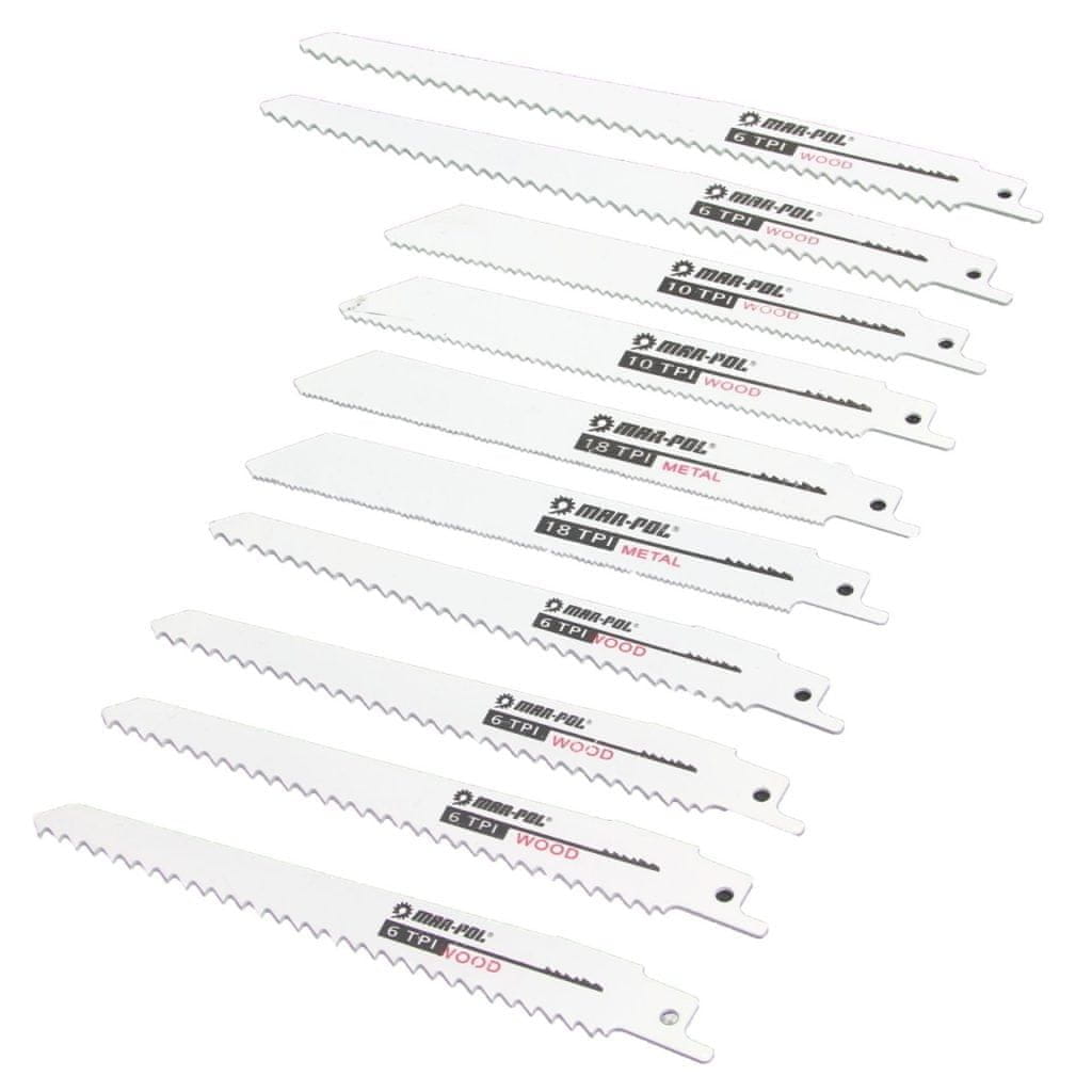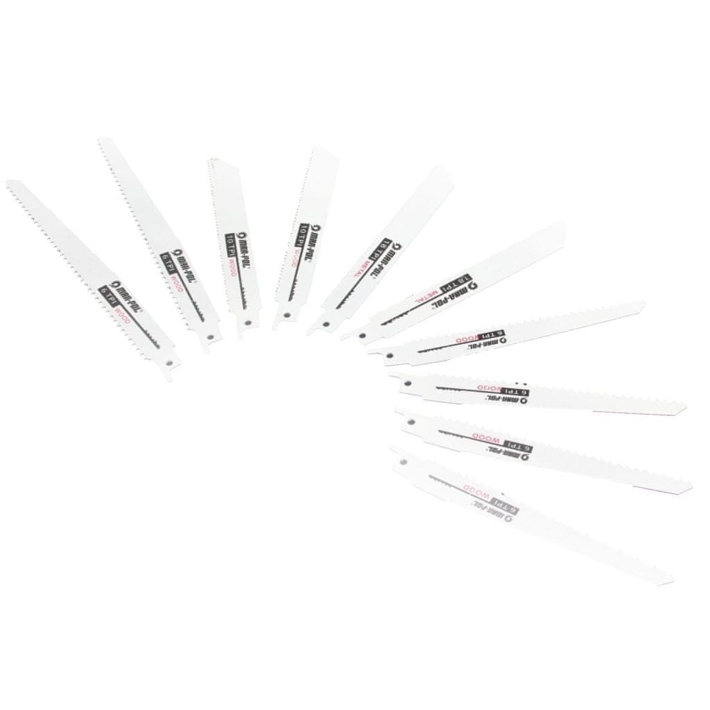 Komplet bimetalnih žaginih listov visokega razreda za sabljaste žage. V kompletu so štiri vrste žaginih listov, skupaj 10 kos.