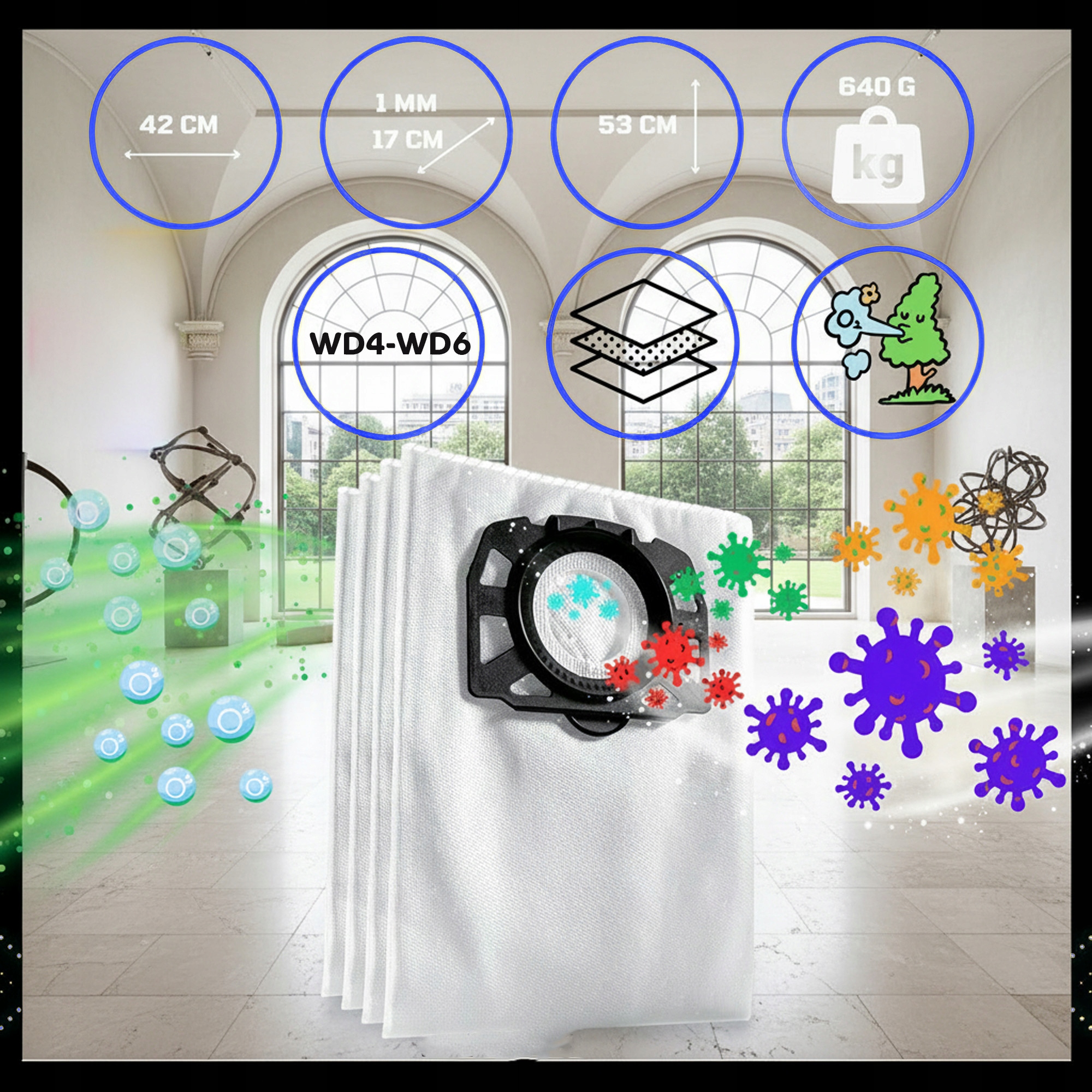 ✅ 10 kosov sintetičnih vrečk ✅ Združljivo z WD4, WD5, WD6, KWD6, MV4, MV5, MV6, SE 5.100 ✅ Vrhunska kakovost ✅ 4-slojna mikrovlakna ✅ Popolnoma prilegajoča se zamenjava