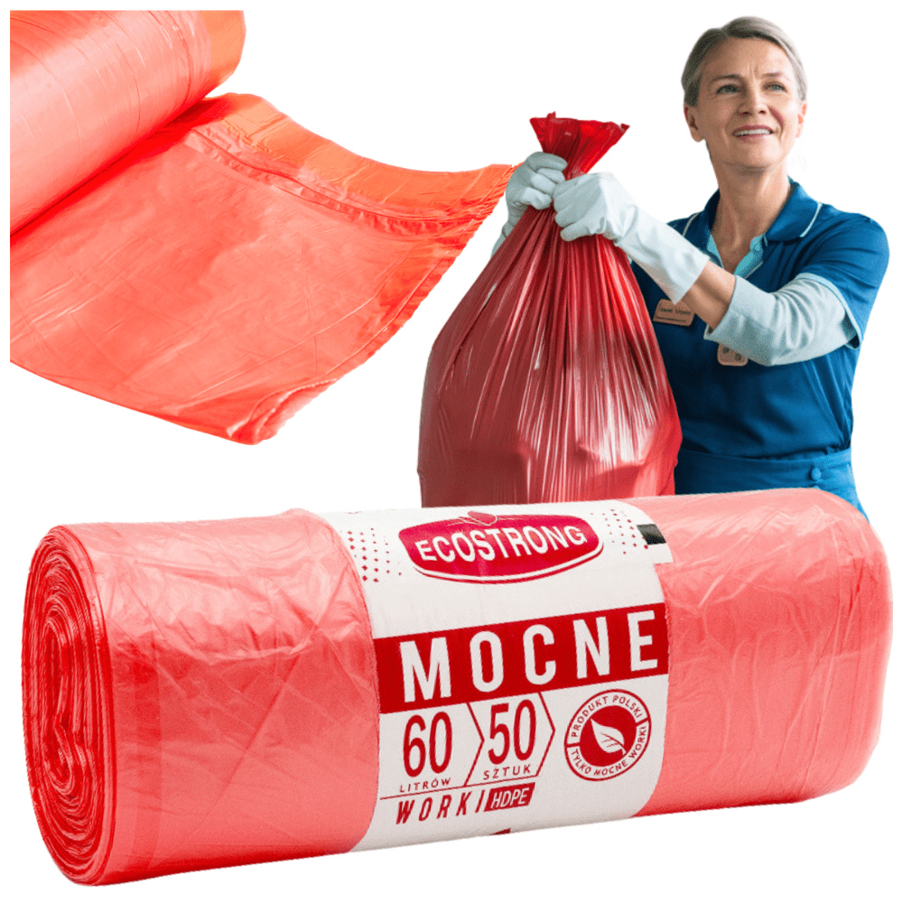 Edinstvene vrečke za odpadke iz trpežne HDPE folije z dimenzijami 60 × 80 cm in prostornino 60 litrov, popolna rešitev za vsak dom in pisarno. En paket vsebuje do 50 vrečk, kar omogoča dolgotrajno uporabo, rdeča barva pa bo vašemu prostoru dodala značaj. Zahvaljujoč tem vrečkam za odpadke postane vzdrževanje čistoče prostorov enostavno in prijetno. Preverite in se prepričajte sami!