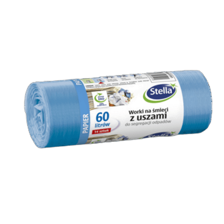 Vrečke za smeti za pakiranje in sortiranje papirnatih odpadkov. V modro vrečko za odpadke lahko spravite: papirno in kartonsko embalažo, papirnate vrečke in vreče, časopise in revije, kataloge in letake, zvezke in knjige,