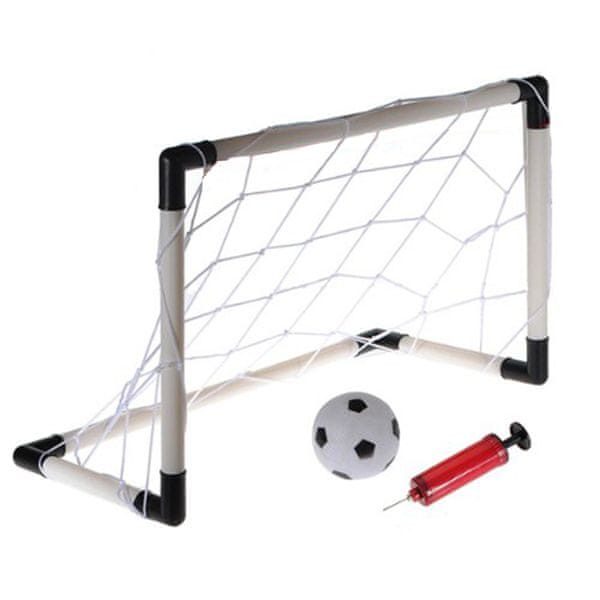 Garnitura z dvema manjšima goloma (ali enim velikim golom) in žogo. Tehnični podatki: Konstrukcija gola iz PVC zasnovan za lahkotno igro z žogo Paket vključuje: 2 gola 93 × 60 × 50 cm ali en gol 184 × 118 × 61 cm 3 mreže kavlji za pritrditev golov 2 žogi črpalka za žoge teža: 1,7 kg Celoten opis