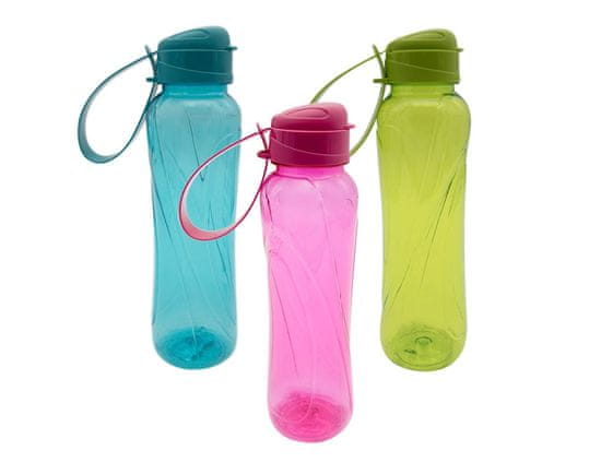 Plastična športna steklenička je izdelana iz visokokakovostne plastike. Robusten in neprepusten pokrovček preprečuje razlitje. Steklenico je enostavno očistiti. Športna steklenička je primerna za kolesarjenje, telovadbo, tek, šolo in druge športe. Steklenica vključuje trak. Barva je odvisna od razpoložljivosti na zalogi. Prostornina 630 ml, premer 6,8 cm, višina 25 cm. EAN 8697975022834 / 5907758609743