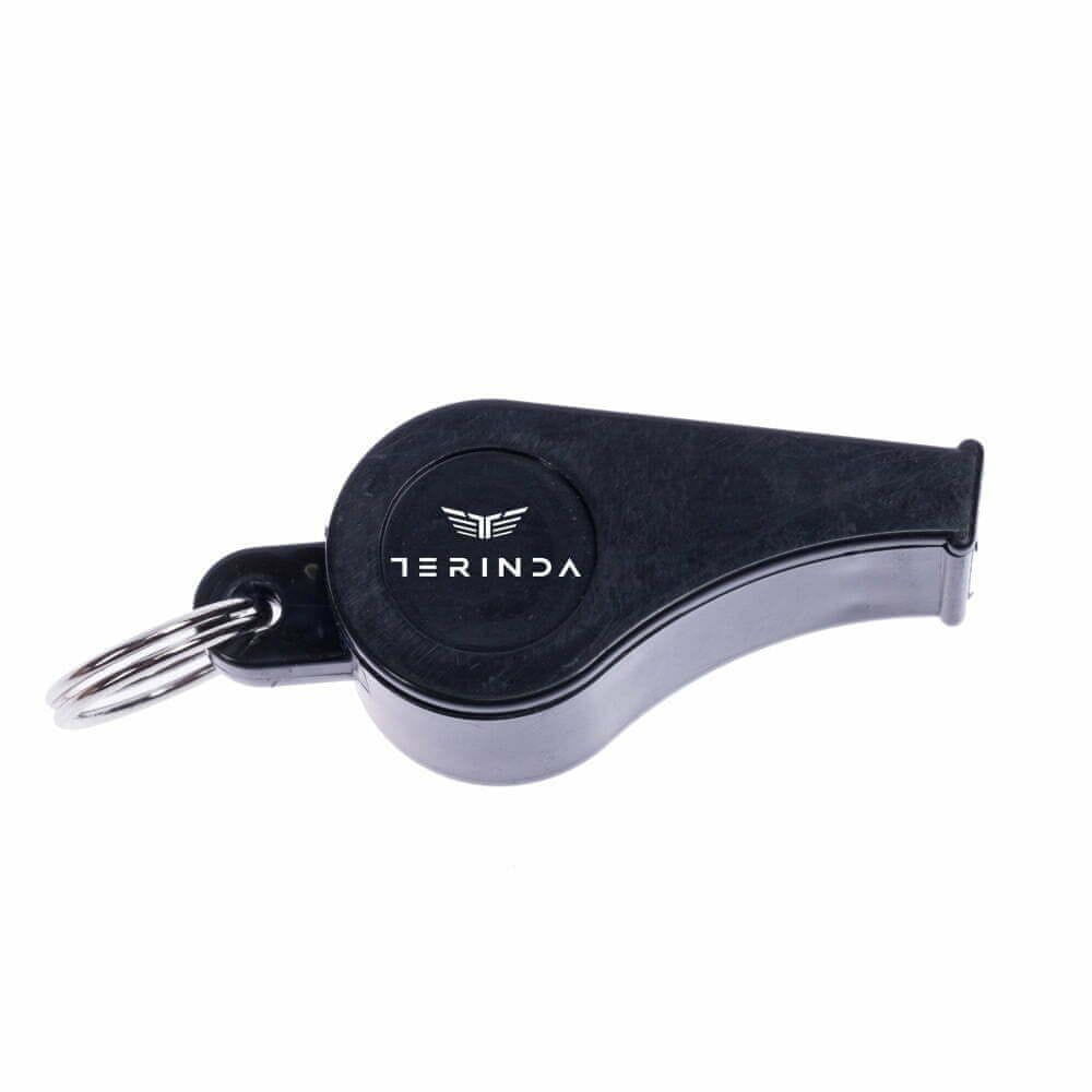 Kovinski obroč na piščalki omogoča pritrditev piščalke na vrvico ali ključe.