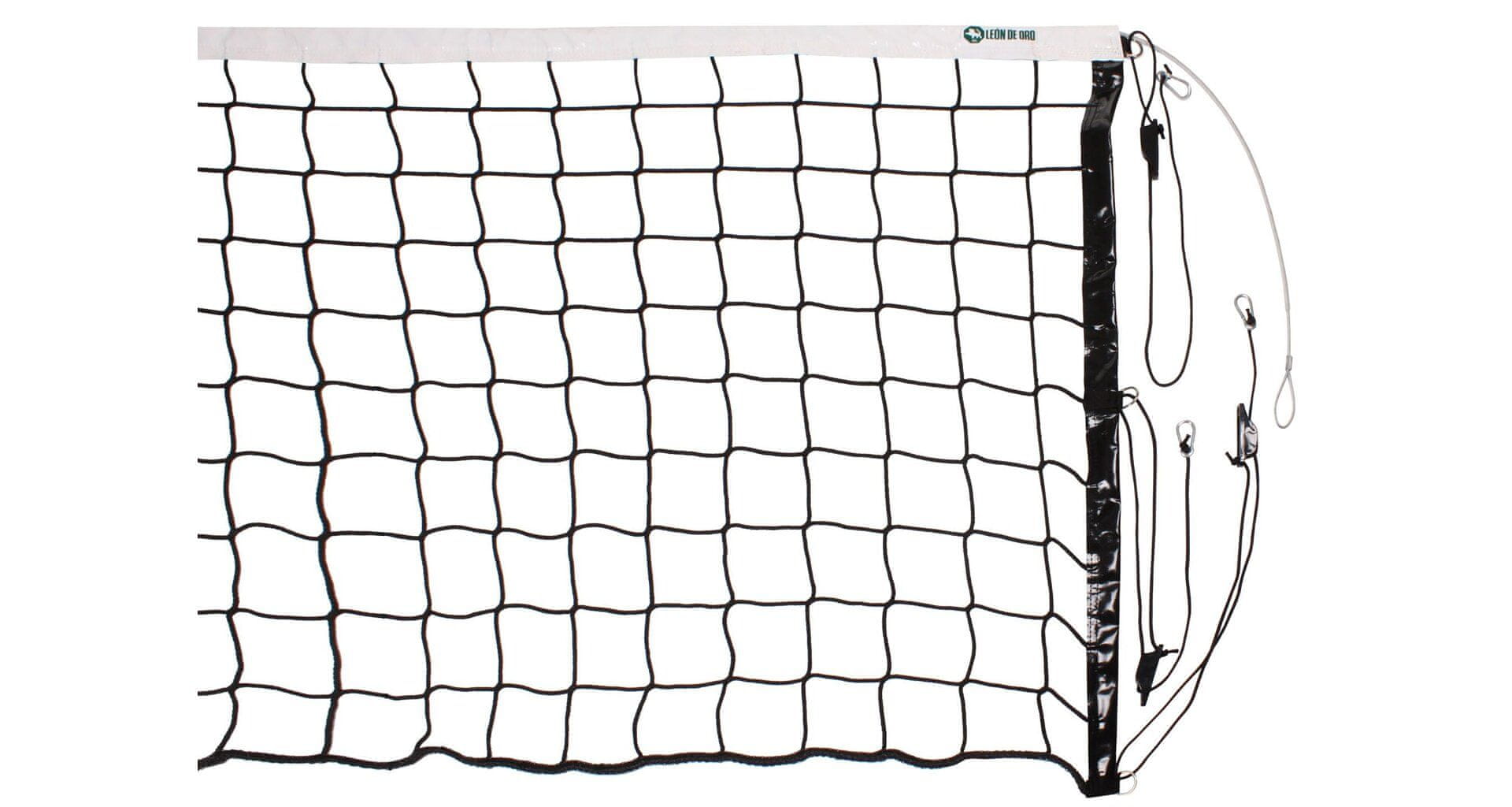 Podjetje León de Oro proizvaja vse vrste športnih mrež, pri čemer je praktično vsa proizvodnja osredotočena na polipropilen brez vozlov, saj ima najboljše lastnosti za izpolnjevanje evropskih standardov. Njihove odbojkarske mreže so del najpomembnejših mednarodnih tekmovanj (uradni dobavitelj Španske kraljeve odbojkarske zveze) in izpolnjujejo vse zahteve standarda EN 1271. Mreža za odbojko Volleyball Competition 3 mm z dimenzijami 95 × 1 m je izdelana iz polipropilena, odpornega proti UV-žarkom, debeline 3 mm in z velikostjo očesa 100 mm. Mreža ima jekleno vrv za napenjanje. Parametri: – material PP – velikost: 95 × 1 m – debelina: 3 mm – velikost mrežnega očesa: 100 mm – zgornji trak iz PVC – jekleni kabel s PVC zavitim kablom dolžina kabla: 125 m – za notranjo in zunanjo uporabo