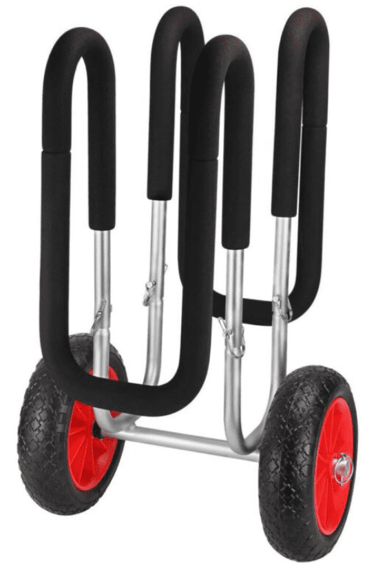 Voziček je izdelan iz aluminija in ima površino prekrito s peno, kar preprečuje drgnjenje SUPa z ogrodjem.