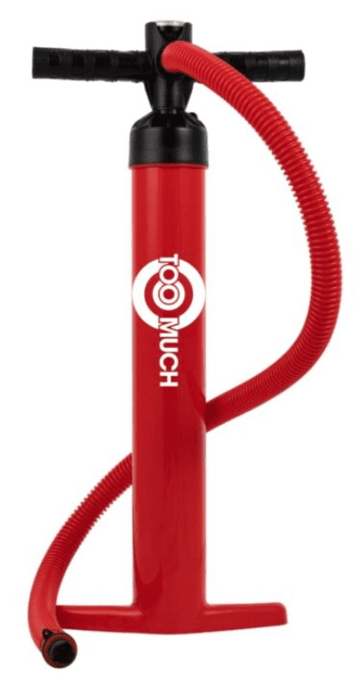 Too Much ročna zračna tlačilka za SUP, kajak, čoln ali blazino. Opremljena je z ergonomskim ročajem, ki zagotavlja udoben oprijem, ter stabilno, široko spodnjo nogo, ki omogoča varno in zanesljivo fiksiranje med uporabo. Celoten opis