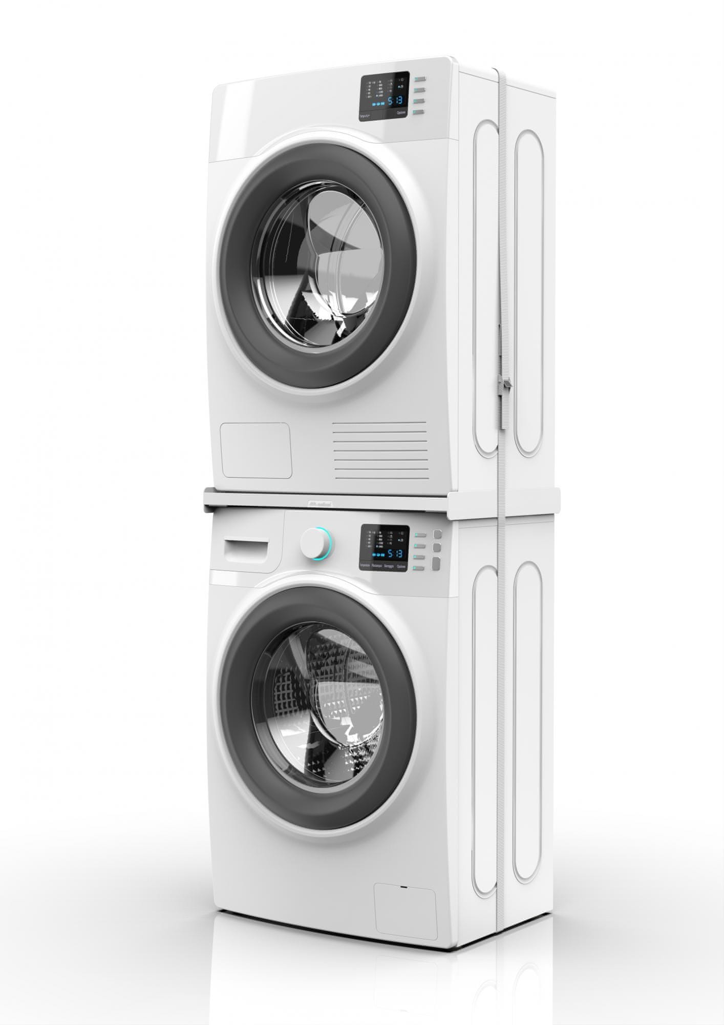 Univerzalni vezni člen za pralni/sušilni stroj Torre Slim L45, iz belega tehnopolimera z največjo nosilnostjo 250 kg. Združljiv je z večino pralnih in sušilnih strojev s sprednjim polnjenjem. Omogoča prihranek prostora, saj omogoča postavitev sušilnega stroja na vrh pralnega.