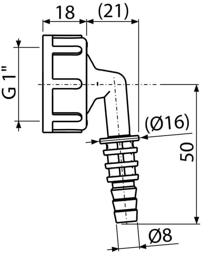 1" kolenčni priključek za sifon, priključek za cev 8–16 mm Celoten opis
