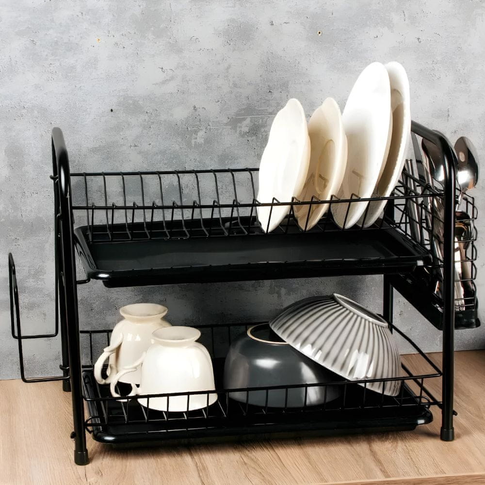 ☑️ To elegantno in funkcionalno stojalo za sušenje posode je popolna rešitev za vsako kuhinjo. Dvostopenjska zasnova omogoča priročno shranjevanje krožnikov, skodelic in jedilnega pribora. Črna, minimalistična oblika se popolnoma prilega moderni notranjosti.