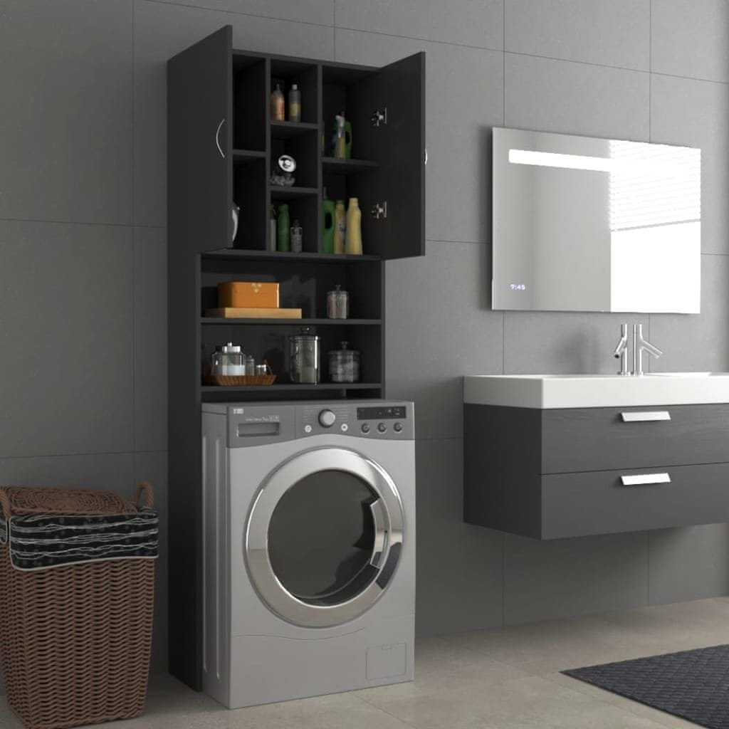 Vidaxl Omara za pralni stroj visok sijaj siva 64x25,5x190 cm