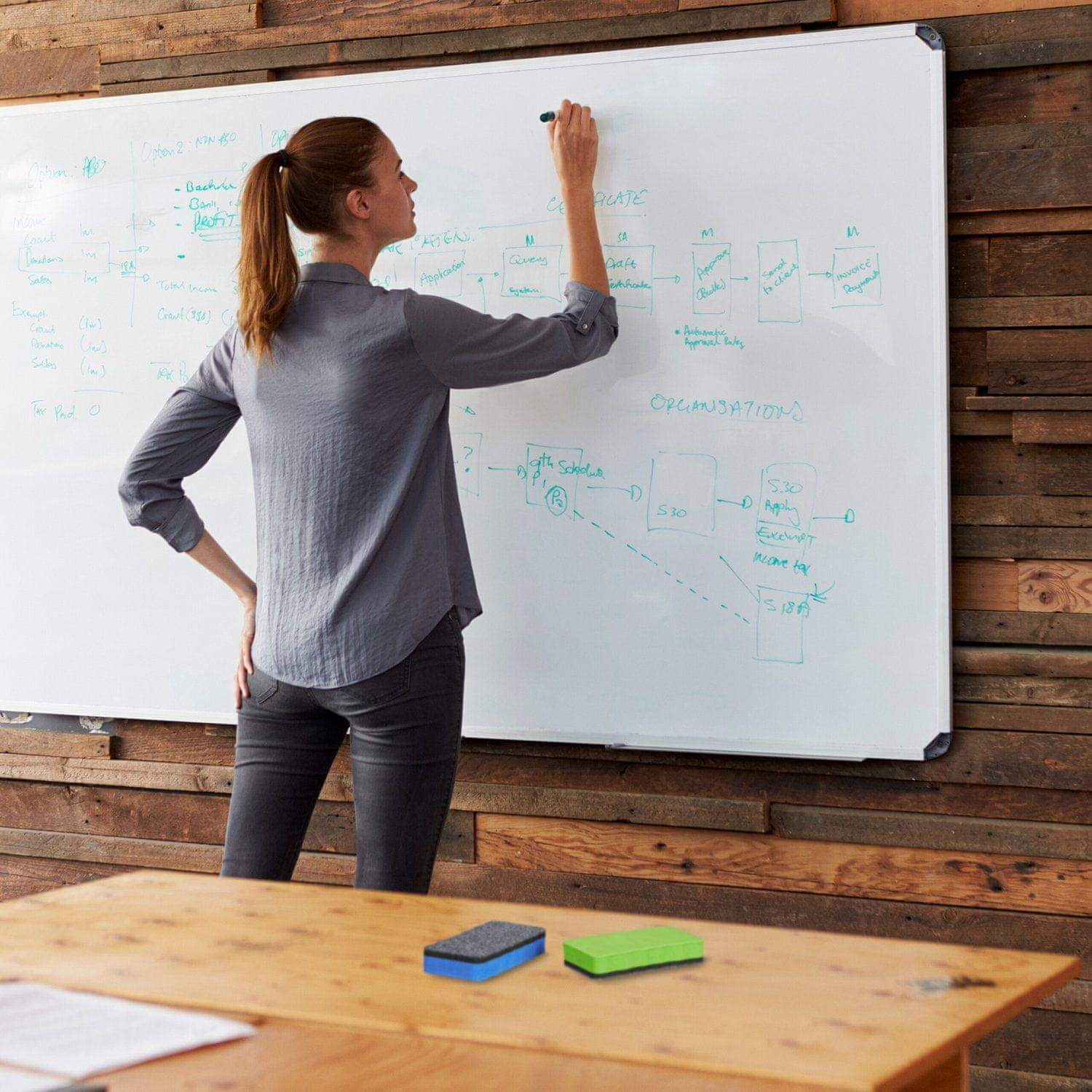 Pisane kvadratne radirke za belo tablo povečajo produktivnost z učinkovitim odstranjevanjem sledi v šolah, pisarnah in na univerzah. Vgrajeni magneti zagotavljajo enostavno shranjevanje in dostopnost.