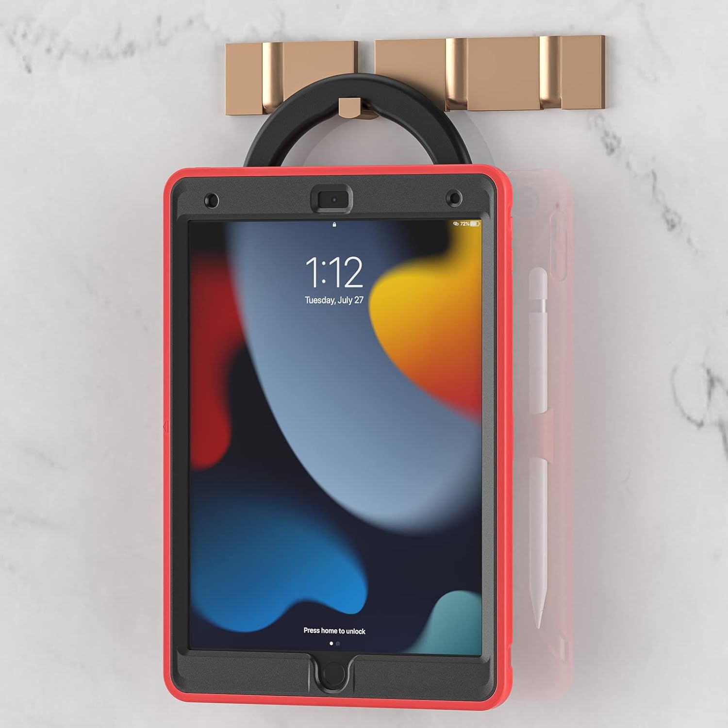 Nikcorp Oklepni etui za iPad 10.2" z vrtljivim stojalom in ročajem | Troslojna zaščita pred udarci | Rdeč