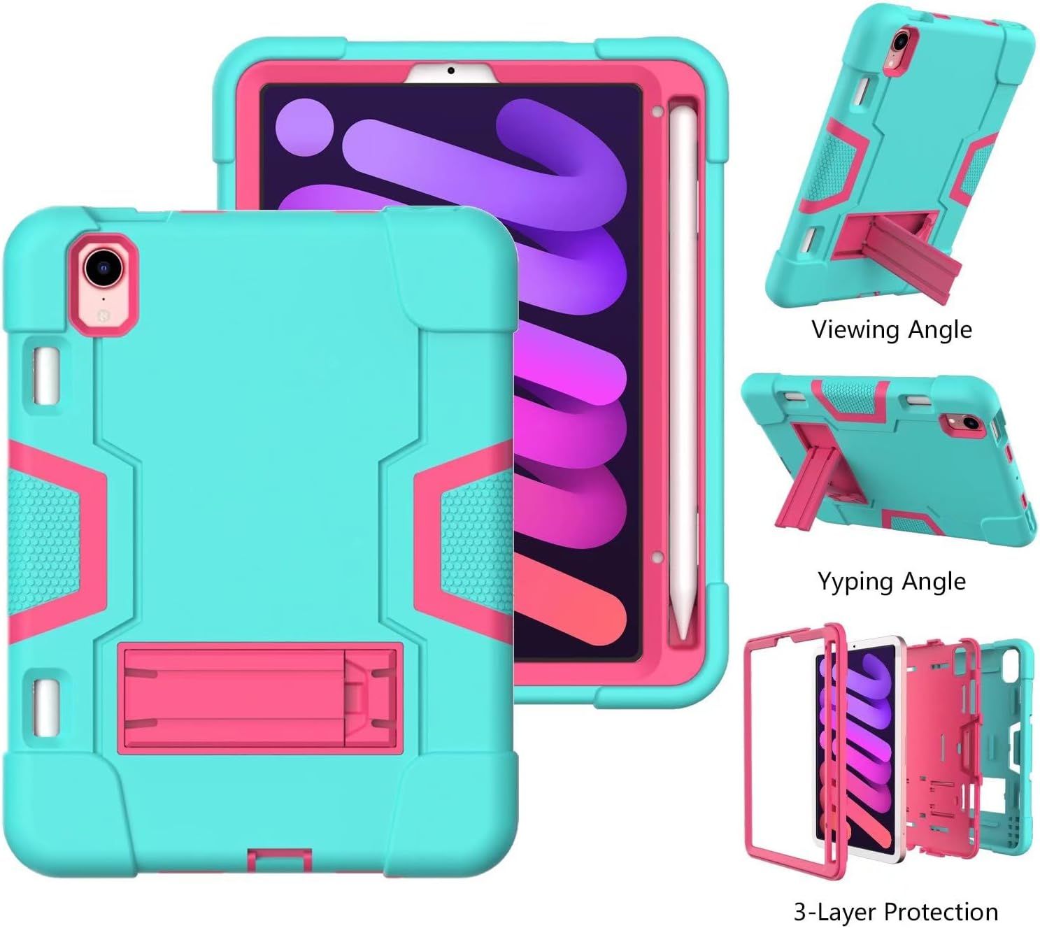 Nikcorp Oklepni etui za iPad Mini 6 8.3" s stojalom in držalom za pisalo, trpežen ovitek za tablico, mint barva