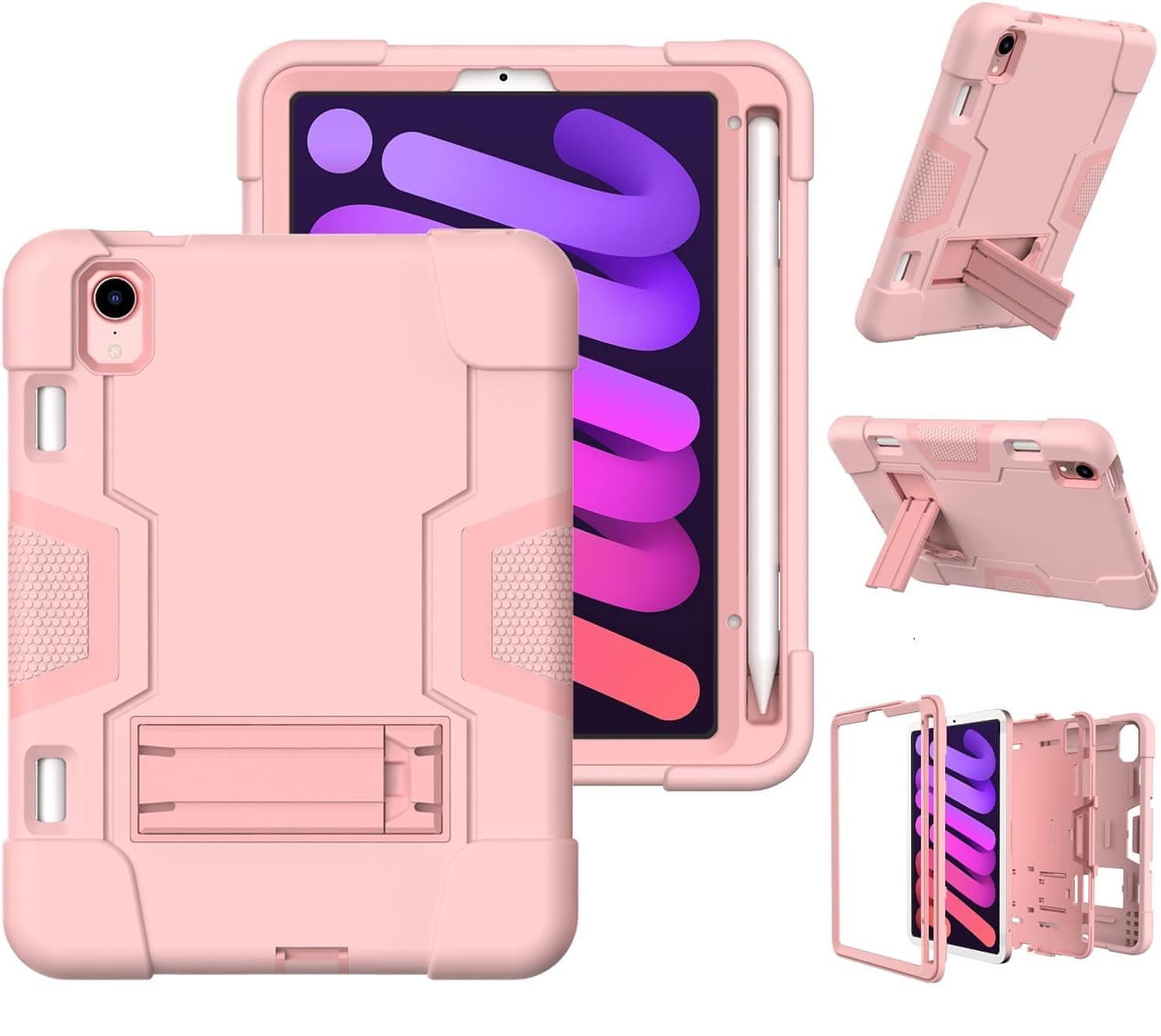 Etui za iPad Mini 6 8,3” Oklepno s Stojalom in Prostorom za Pisalo Roza