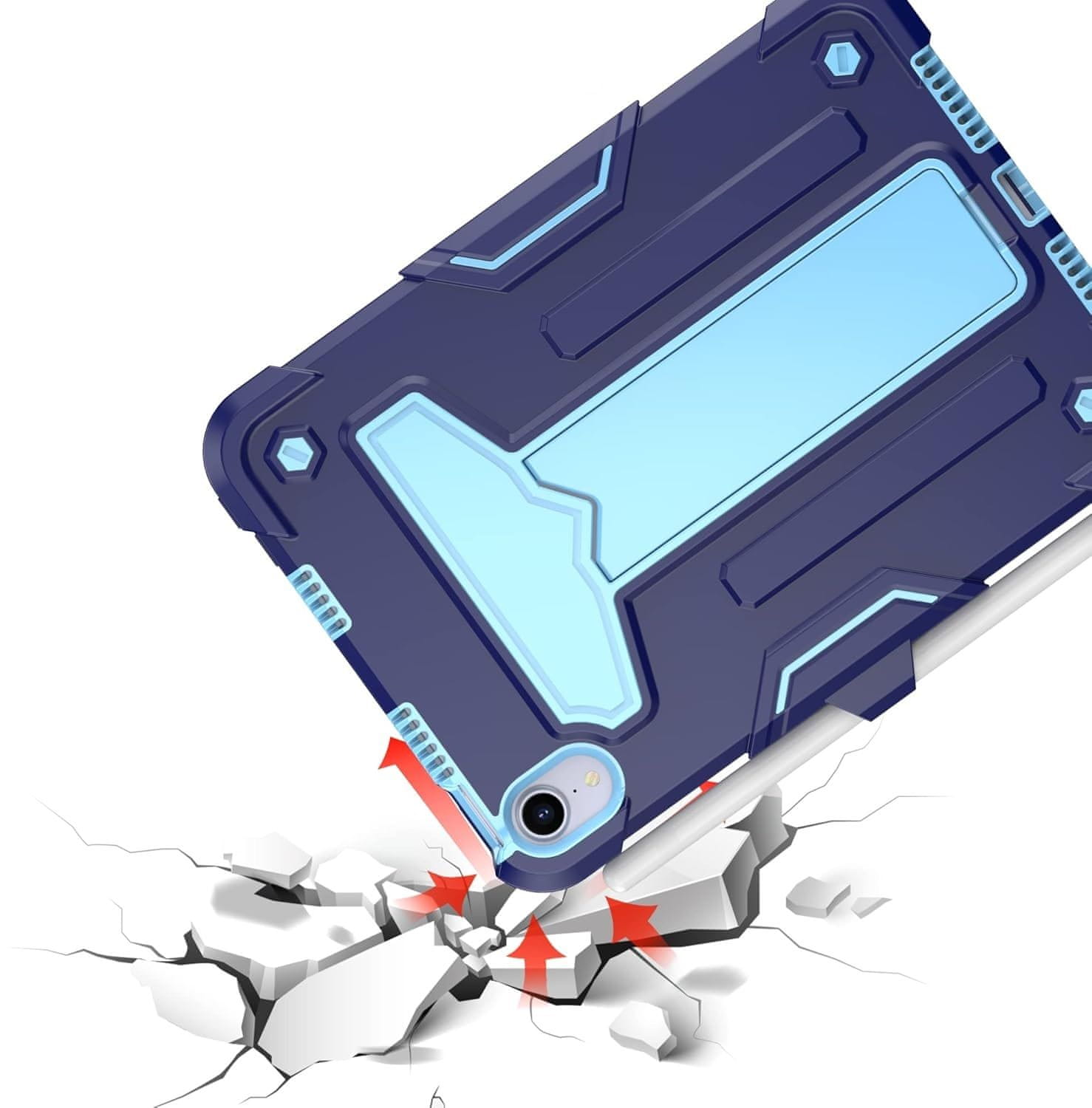 Etui za iPad Mini 6 8,3” Oklepno s Stojalom in Prostorom za Pisalo Modro. Trikratna, oklepna zaščita iz silikona in plastike ščiti pred padci in praskami. Vgrajeno stojalo in prostor za pisalo za maksimalno funkcionalnost. Celoten opis
