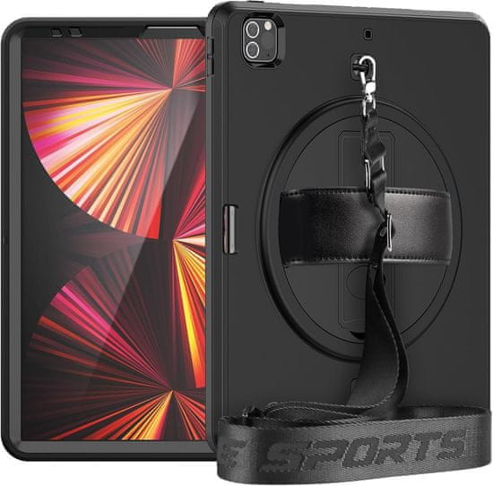 Nikcorp Ovitek za iPad 10,2" 9/8/7, 360° stojalo, ročaj in naramni pas, odporen na udarce, črn