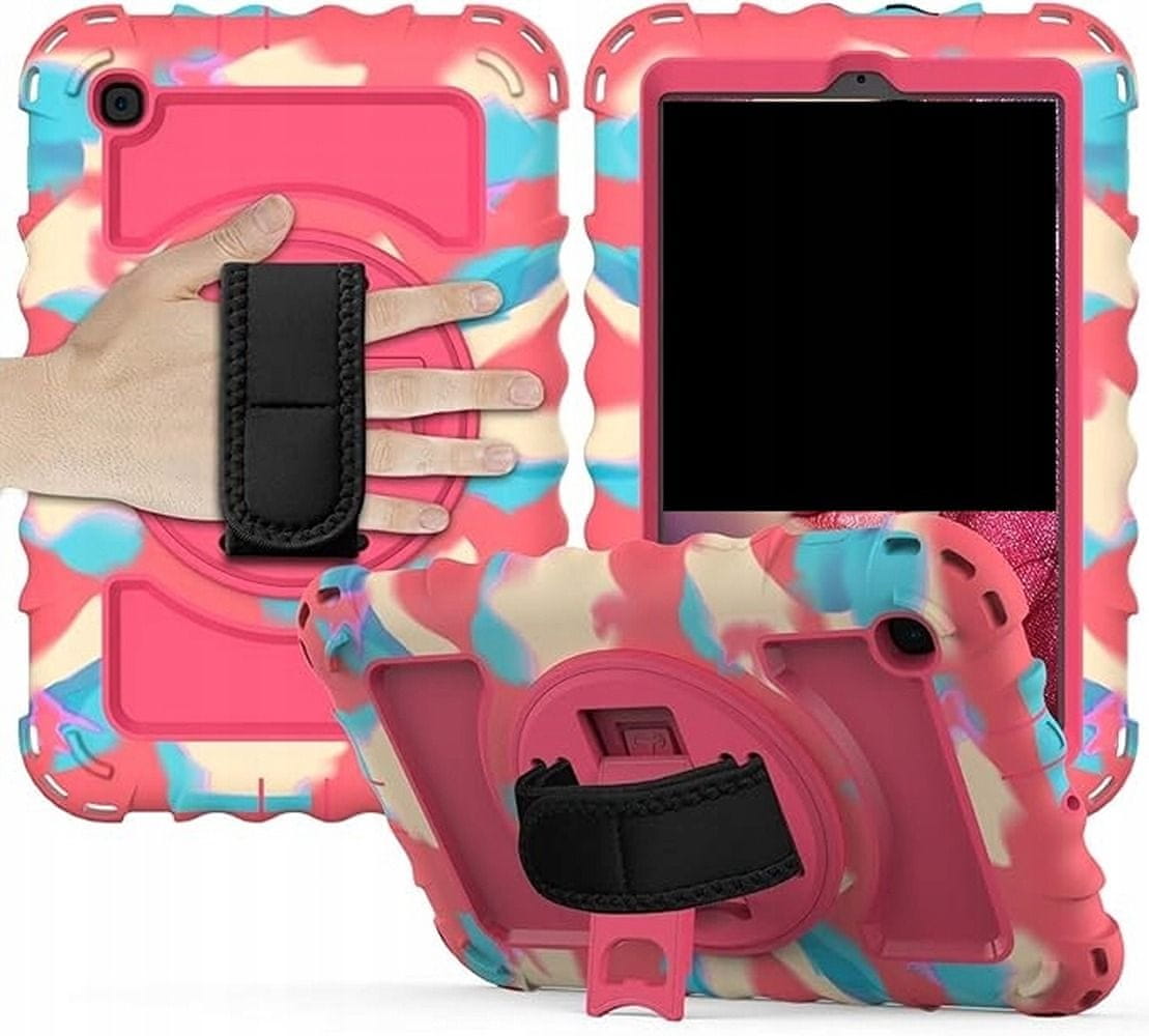 Nikcorp Vzdržljiv zaščitni etui za Samsung Galaxy Tab 8.0, 360° vrtljivo stojalo, ročaj in naramni pas, roza barva