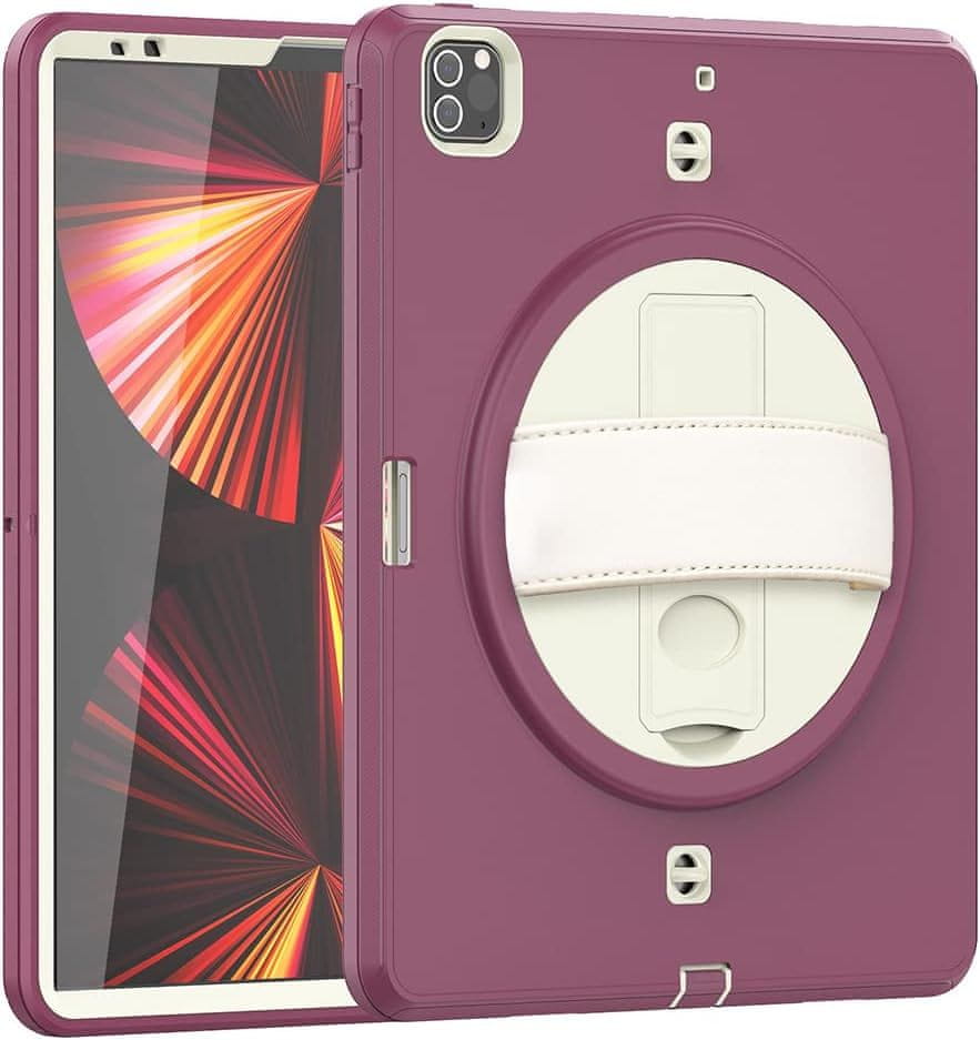Nikcorp Vzdržljiv zaščitni ovitek za iPad Pro 11 z vrtljivim stojalom, držalom za pisalo in ramenskim pasom, vijoličen