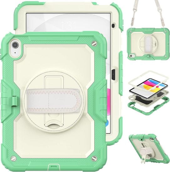 Nikcorp Vzdržljiv zaščitni ovitek za iPad 10.2 (9/8/7 gen) z vrtljivim stojalom, ročajem in ramenskim pasom, zelen