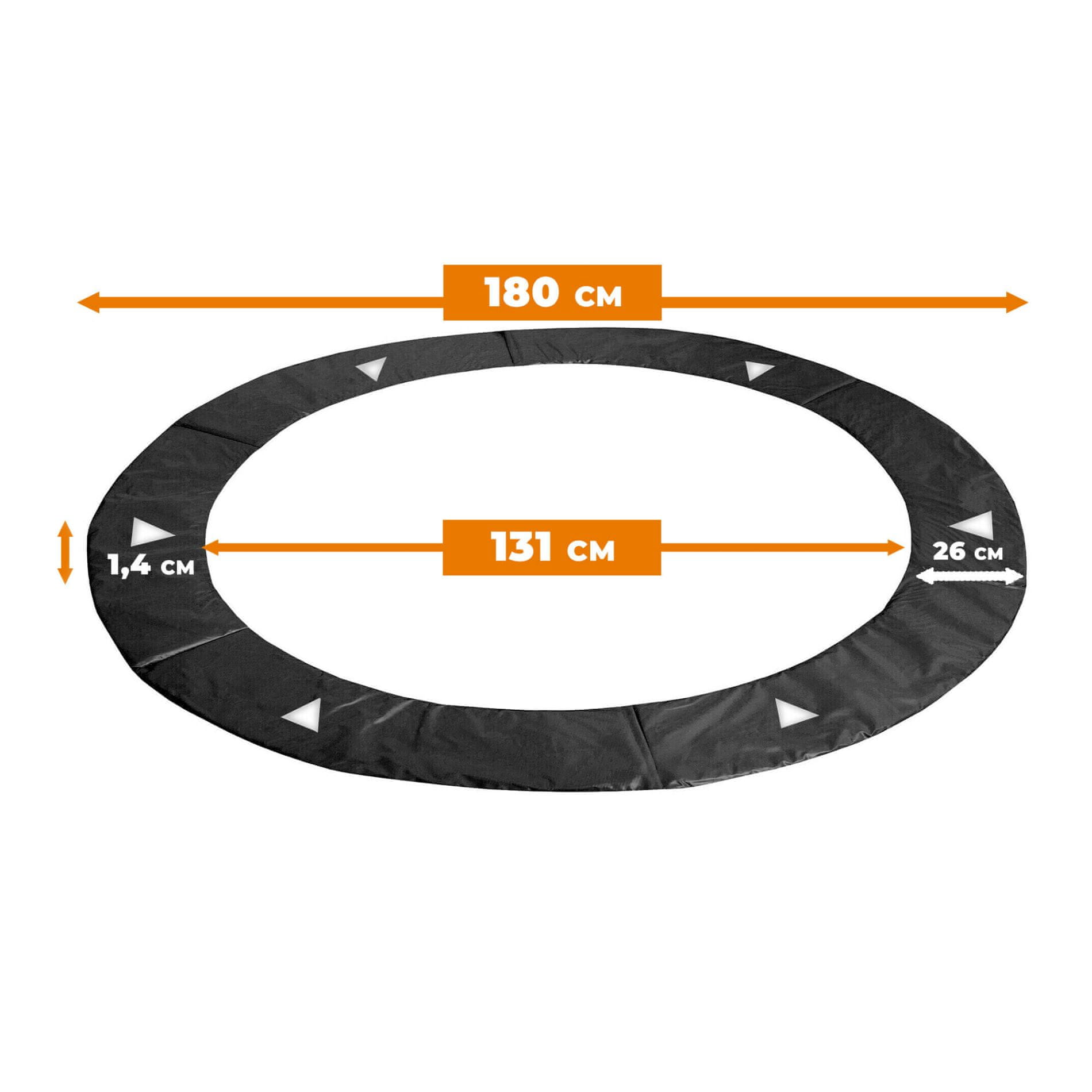 Specifikacije pokrova vzmeti AGA za trampolin z notranjo mrežo 180 cm (6 ft).